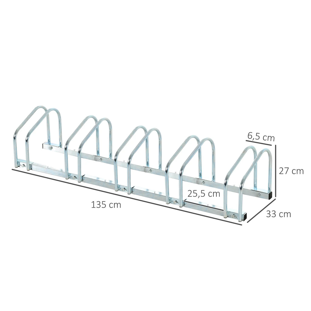 Unser praktischer Mehrfachständer von HOMCOM bietet einen sicheren Stellplatz für bis zu 5 Fahrräder. Die langlebige Stahlkonstruktion ist mit einer wetterfesten Lackierung versehen und eignet sich ideal für den dauerhaften Einsatz im Außenbereich. Kinderräder, Mountainbikes, Rennräder oder City Bikes mit einer Reifenbreite von bis zu 55 mm können sicher abgestellt werden. Zudem kann der Fahrradständer bequem mit einem identischen Ständer kombiniert oder einfach als Einzelständer genutzt werden.
