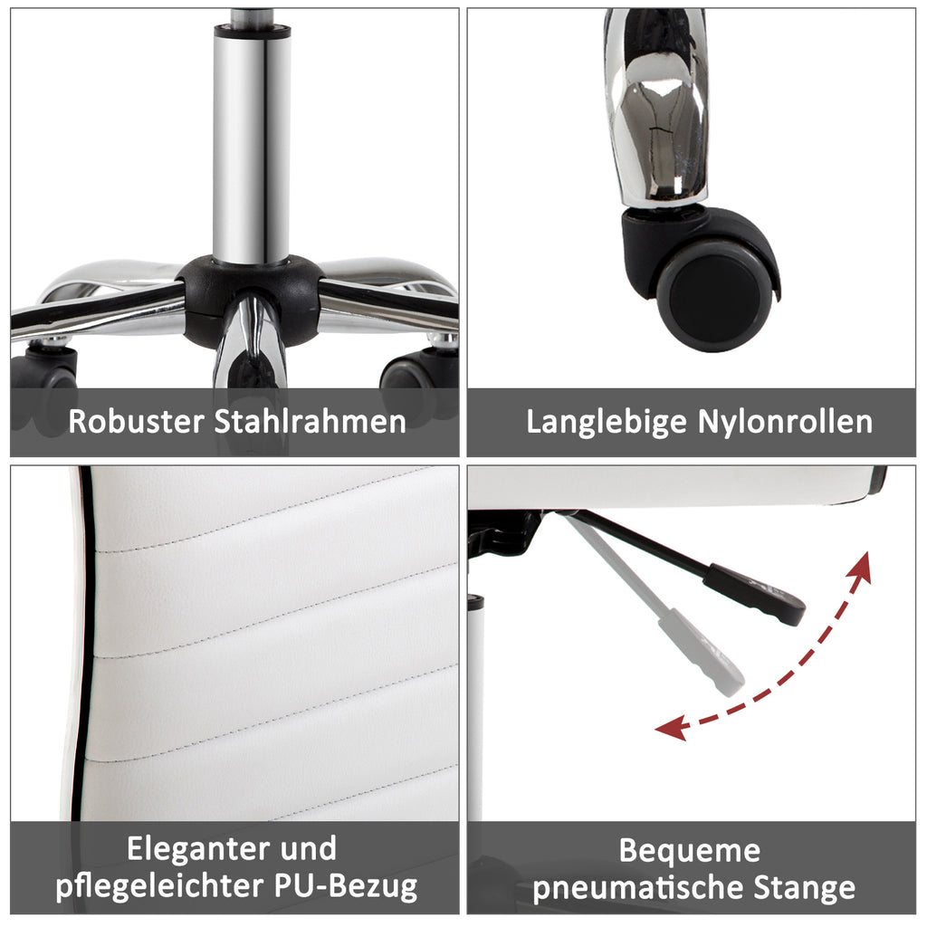 HOMCOM Friseurstuhl, Salonstuhl mit Rückenlehne, Höhenverstellbar, Stahl PU, Weiß, 48 x 52 x 78-90 cm