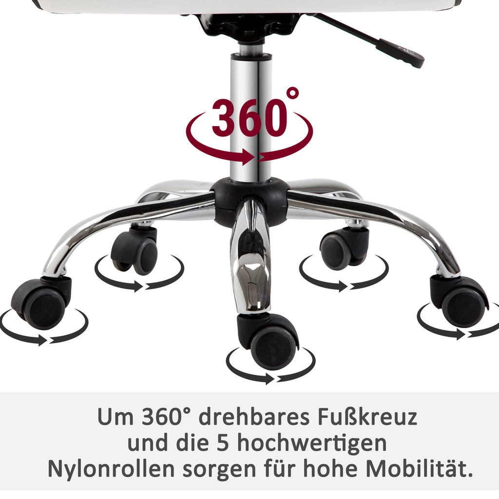 • Stabiles Fußkreuz mit 5 Rollen aus Nylon, um 360 Grad drehbar
