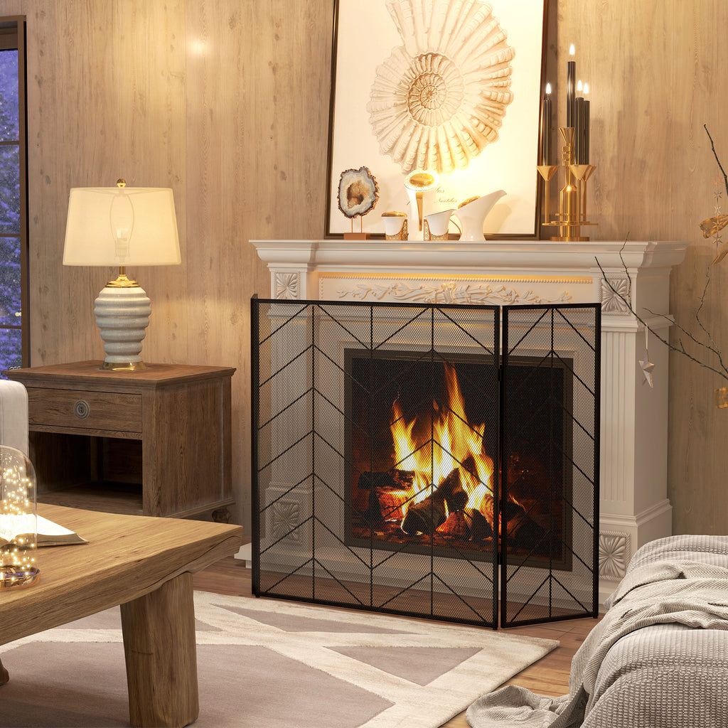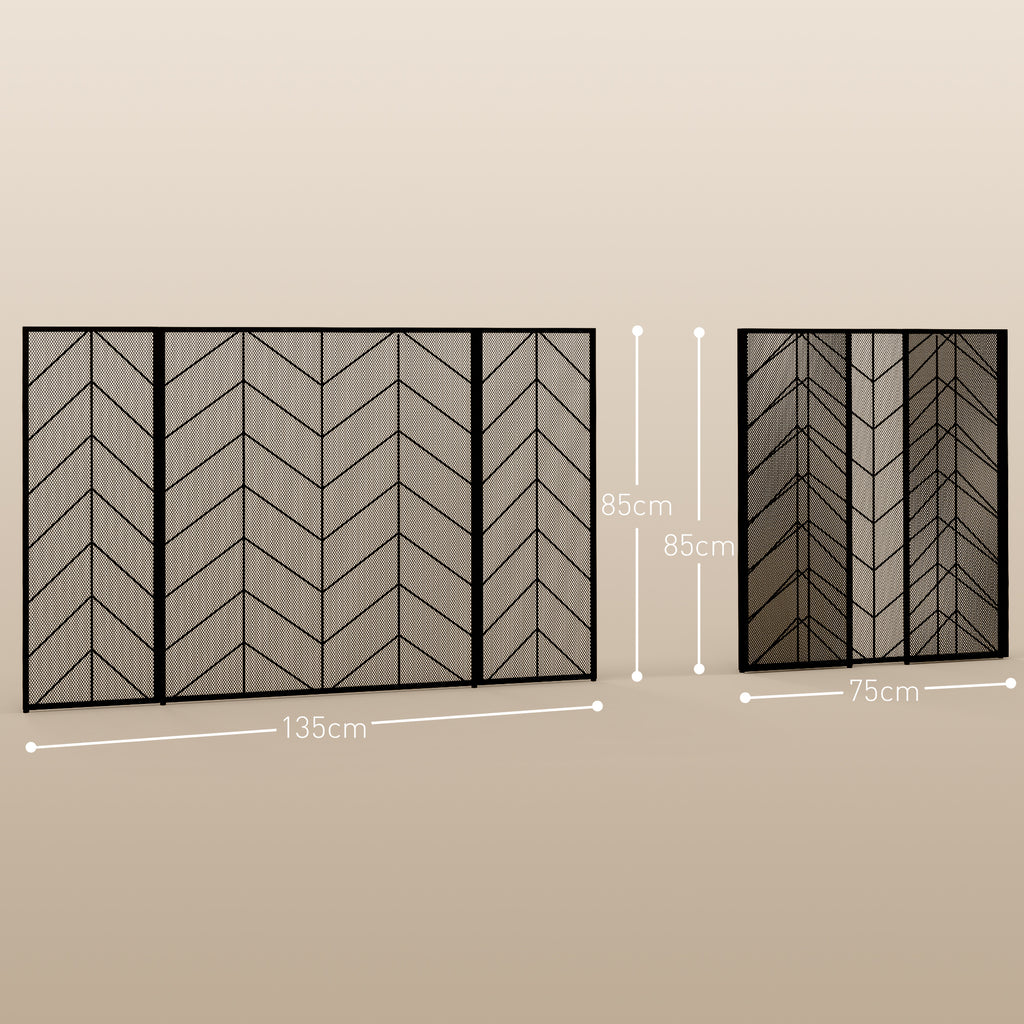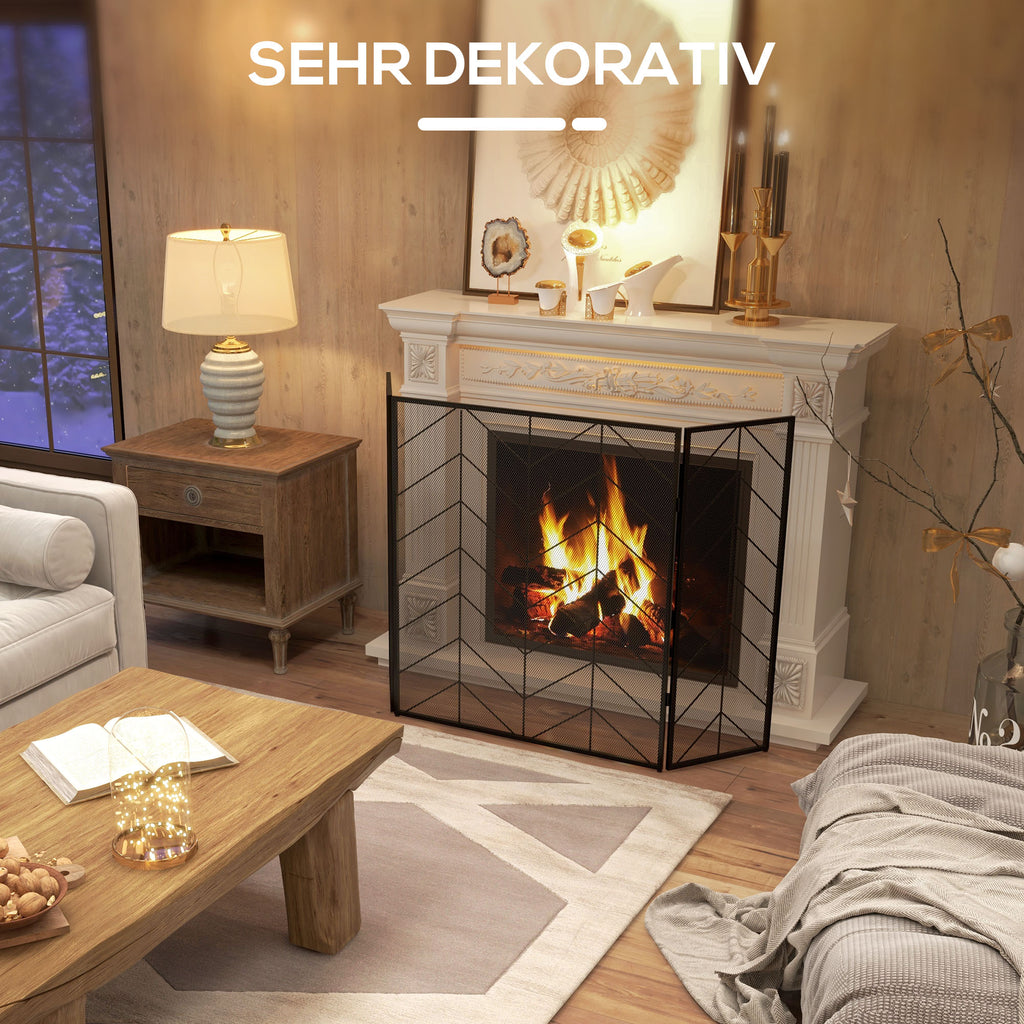 Verleihen Sie Ihrem Kamin mit dem HOMCOM Kaminschutzgitter einen Hauch von Eleganz und Sicherheit. Das schicke Fischgrätmuster dieses Kaminschutzgitters verschönert Ihren Raum und schützt vor umherfliegenden Funken. Die dreiteilige, klappbare Konstruktion des Kamingitters aus pulverbeschichtetem Stahl bietet Stabilität und lässt sich leicht verstauen. Perfekt für gemütliche Abende am Feuer!