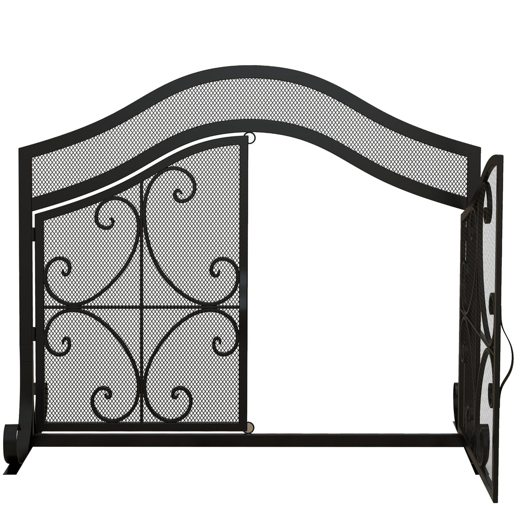 HOMCOM Funkenschutz für Kamine, elegantes Muster, doppeltürig, magnetische Türen, Schwarz, 105 x 40 x 80,5 cm