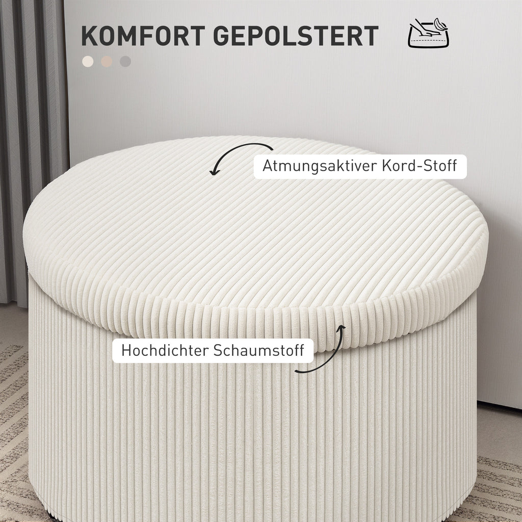 HOMCOM Fußhocker mit 97 L Stauraum, Cordstoff, Schaumstoff, Sitzhocker, Beige
