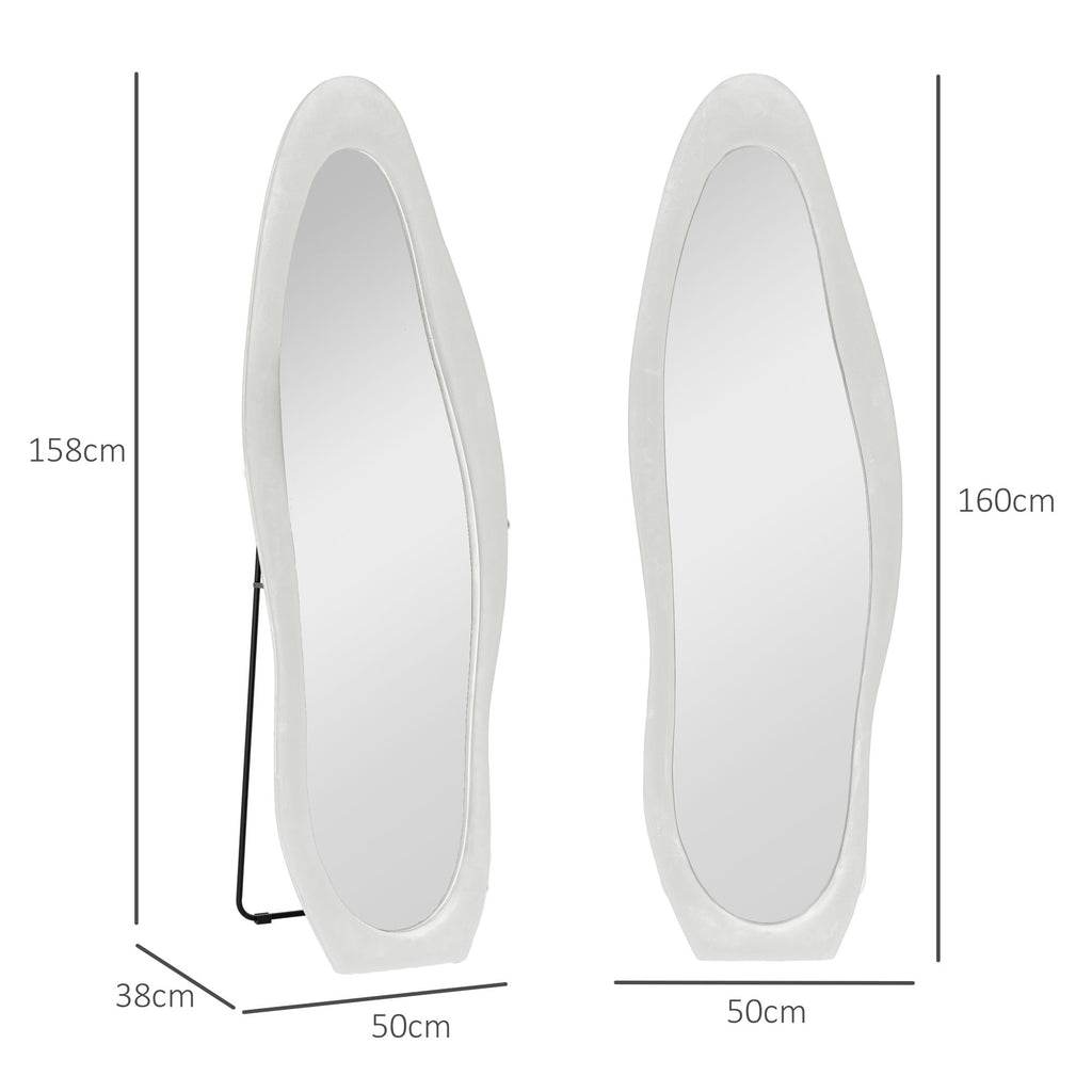 Erleben Sie eine frische Perspektive mit dem Ganzkörperspiegel von HOMCOM. Mit Maßen von 160 x 50 cm ermöglicht der Stehspiegel eine Ganzkörperansicht, ideal für das Schlafzimmer oder als Wandspiegel im Ankleidebereich. Sein einzigartiges, wellenförmiges Design mit samtweichem Rahmen macht einen stilvollen Eindruck und das splitterfeste Glas sorgt für Sicherheit und klare Sicht.