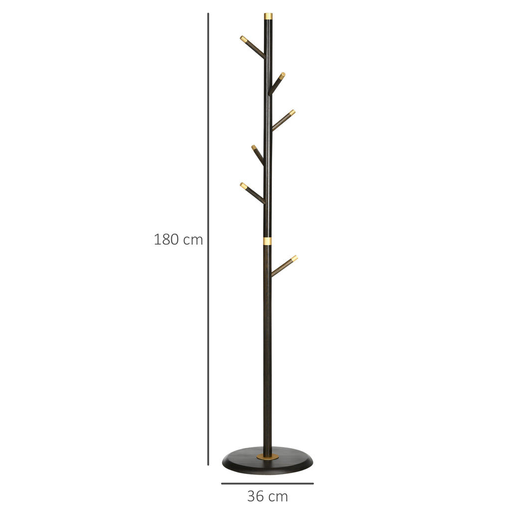 HOMCOM Garderobenständer, Kleiderständer, 6 Haken, Walnuss