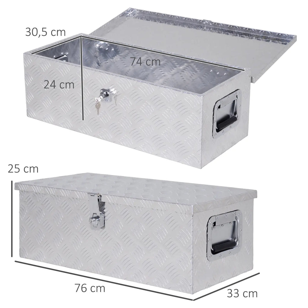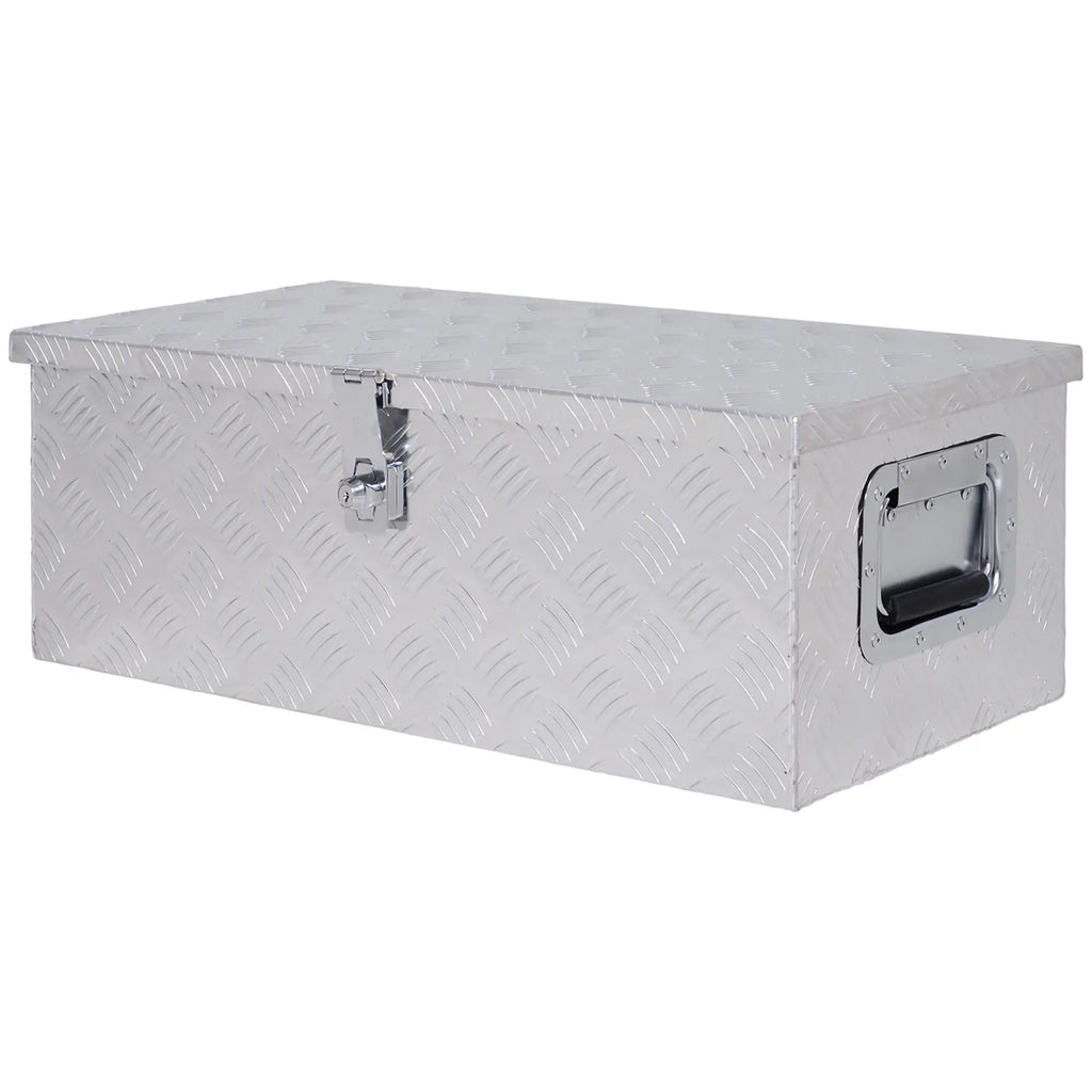 HOMCOM Gerätekasten, Werkzeugkiste, mit Schloss, zwei Tragegriffe, Aluminium, 76 x 33 x 25 cm