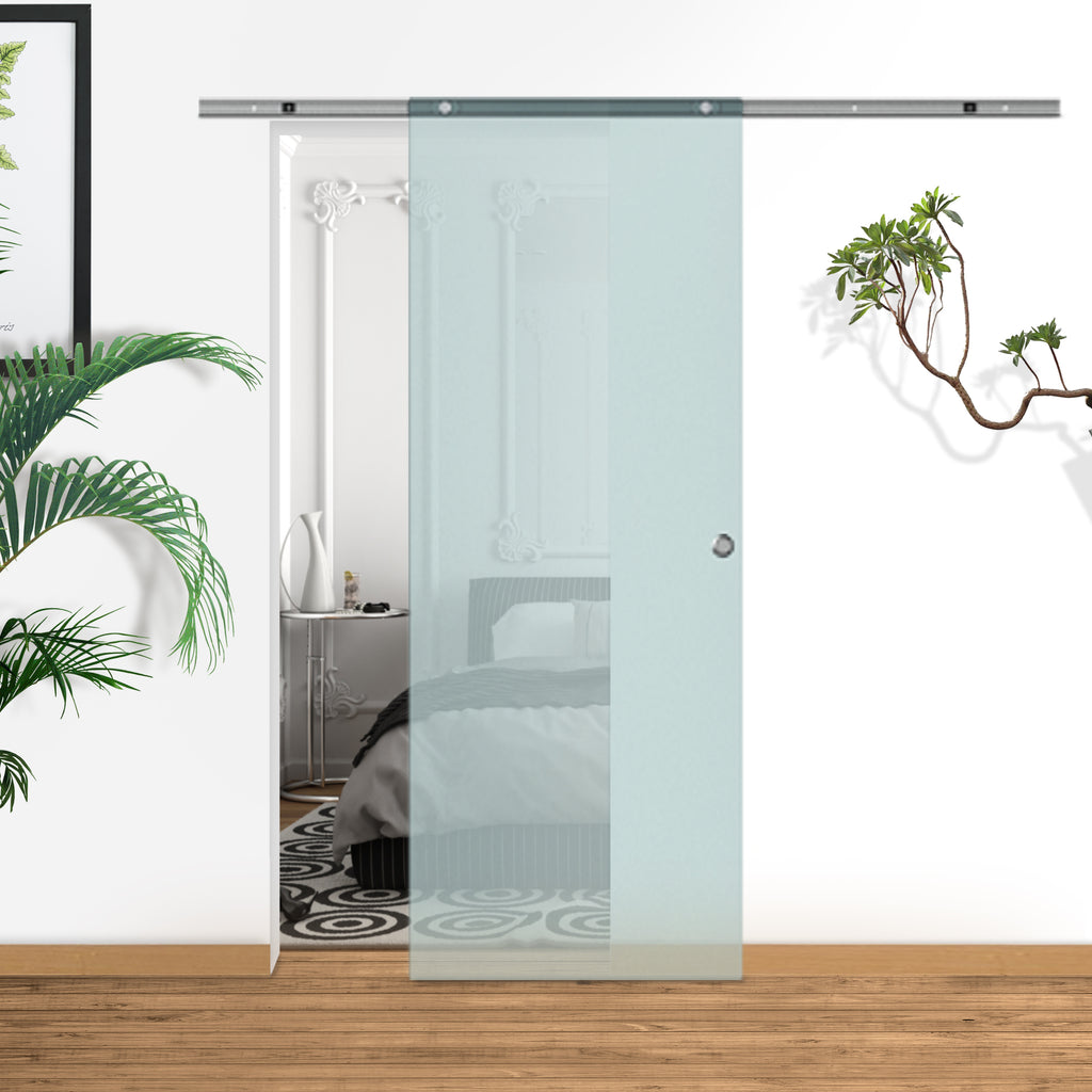 Entdecken Sie Ihr Zuhause neu. Ob als Raumteiler, Eingangstür oder moderne Bürotür. Die Einsatzmöglichkeiten sind vielfältig. Die Ganzglasscheibe ist vollsatiniert,blickdicht und lichtdurchlässig. Befestigt wird Sie am Aluminium Hängesystem. Dadurch läuft Sie flüsterleise und ruhig - ganz ohne zusätzliche Bodenführung. Die Scheibe selbst besteht aus 8mm starkem ESG und ist besonders robust. Die Tür kommt im Komplettset, sodass selbst ohne handwerkliche Erfahrung ein einfacher Aufbau möglich ist.