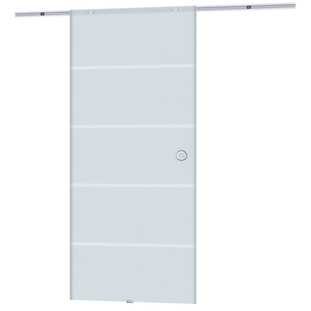 Entdecken Sie Ihr Zuhause neu. Ob als Raumteiler, Eingangstür oder moderne Bürotür. Die Einsatzmöglichkeiten sind vielfältig. Die Ganzglasscheibe ist teilsatiniert und lichtdurchlässig. Befestigt wird Sie am Aluminium Hängesystem. Dadurch läuft Sie flüsterleise und ruhig - ganz ohne zusätzliche Bodenführung. Die Scheibe selbst besteht aus 8mm starkem ESG und ist besonders robust. Die Tür kommt im Komplettset, sodass selbst ohne handwerkliche Erfahrung ein einfacher Aufbau möglich ist.