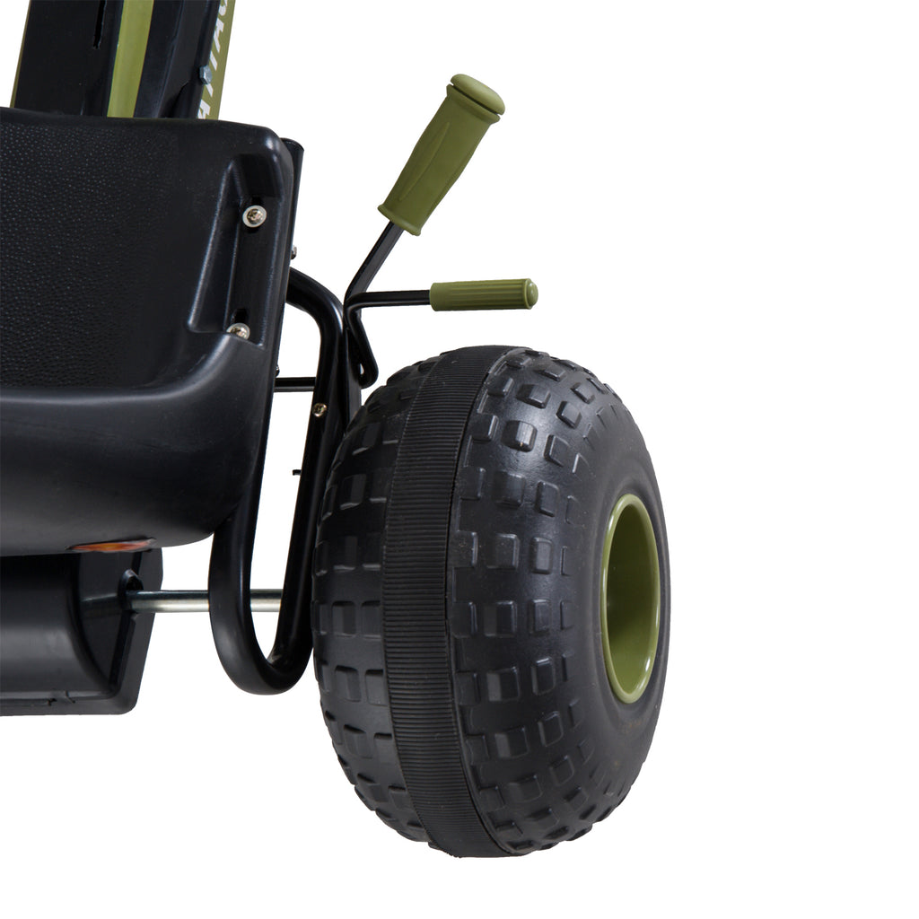 Bei unserem Kinder Gokart von HOMCOM wird Fahrspaß großgeschrieben. Das taffe Armee-Design Ihres Kinderfahrzeugs macht Lust auf Draußen, so ist stundenlanger Fahr- und Spielspaß garantiert. Der Kettenantrieb ist gefahrlos unter einem Schutzblech verborgen, gebremst wird mittels Handbremse. So kommt Ihr Kind auch bei voller Fahrt sicher zum Stehen. Er ist flexibel nach vorne oder hinten einstellbar, sodass Ihre Nachwuchsrennfahrer immer bequem sitzen.