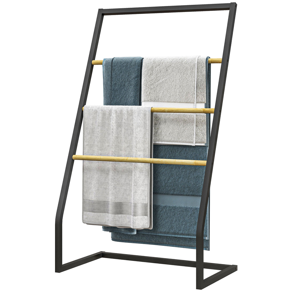 - Pulverbeschichteter Stahl des Standhandtuchhalters trifft auf lackiertes Bambusholz, vereint Langlebigkeit mit ästhetischem Design