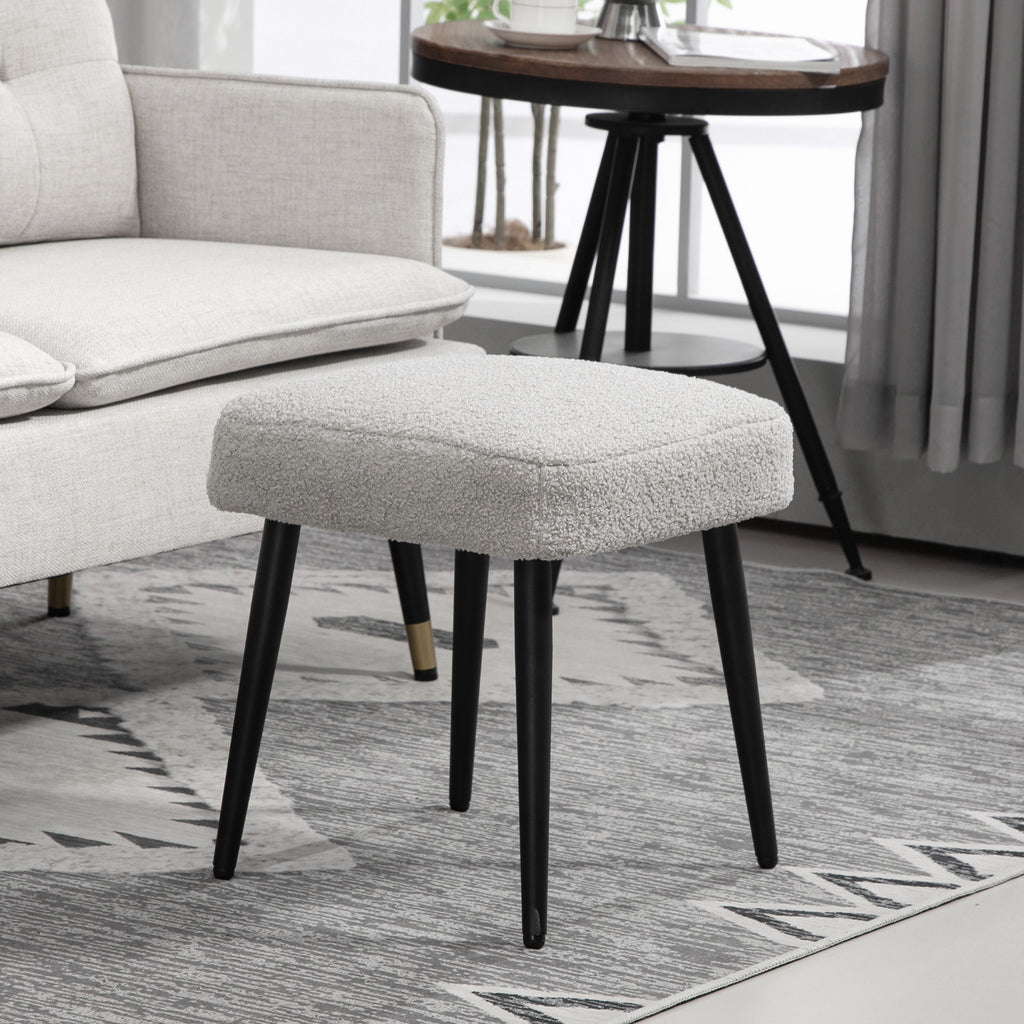 HOMCOM Hocker, Fußstütze, gepolsterter Sitz, Kaschmir-Optik, Stahlbeine, 42 x 42 x 47 cm, Hellgrau