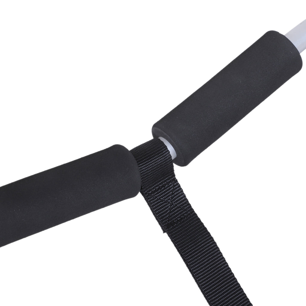 Bewegen Sie Ihr Kanu mit unserem Kanuwagen von HOMCOM leicht und sicher über jeden Untergrund, ohne sich über Kratzer sorgen zu müssen. Die zwei breiten Reifen kommen mit einem Durchmesser von zehn Zoll auch auf unebenem Gelände gut voran und helfen Ihnen dabei, Ihr Kajak schnell bis ganz ans Wasser zu schaffen, selbst über Sand und Kies. Mit einer Belastbarkeit von 90 kg hält das robuste Gestell aus oxidiertem Aluminium Ihr Kanu sicher auf der breiten Polsterung. Sichern Sie es zusätzlich mit dem praktischen mitgelieferten Gurt. Das Mittelband hält die Träger in Position und der extra breite Ständer hilft Ihnen beim Be- und Entladen. Für den Transport und die Lagerung lässt sich der Kanuwagen ganz einfach platzsparend zusammenklappen. Bringen Sie den Transport ganz entspannt hinter sich, damit der richtige Spaß erst losgehen kann. Wir wünschen Ihnen viel Spaß auf dem Wasser!