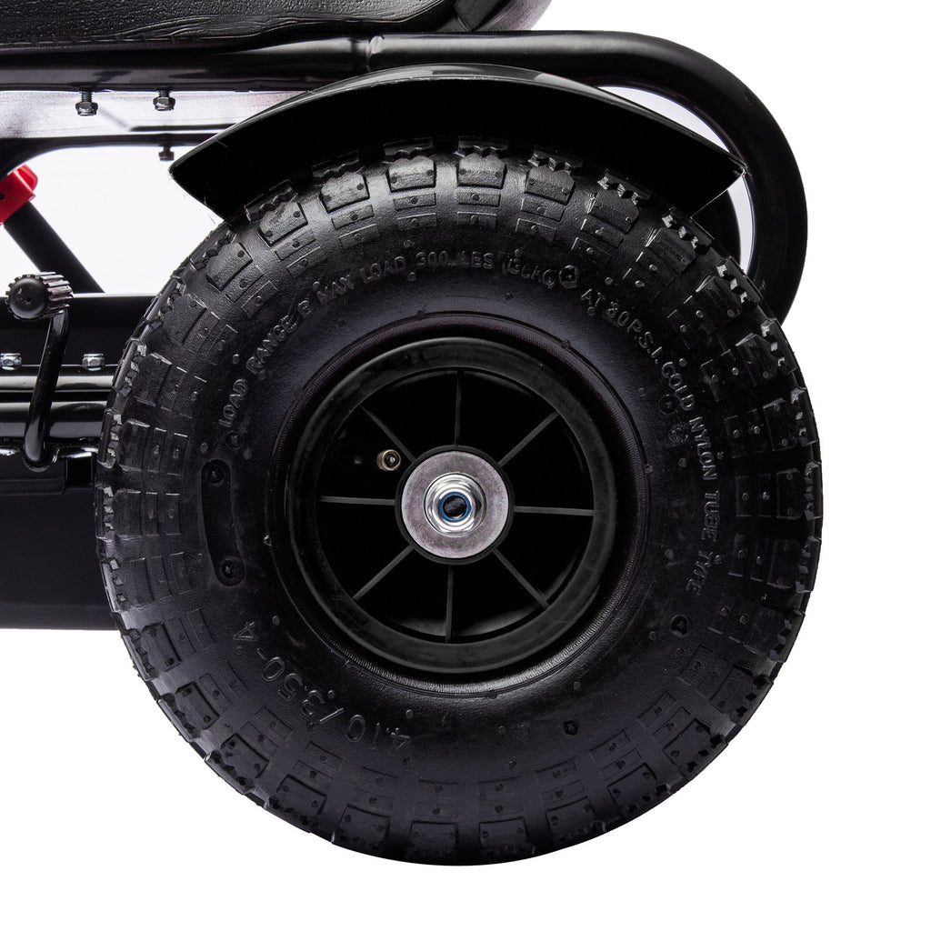 - Luftgefüllte Gummireifen des Kettcars mit Radfederung