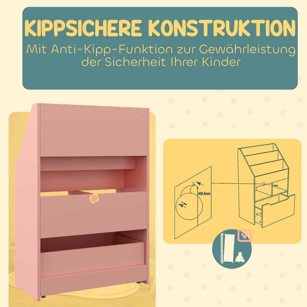 Der unwiderstehliche Charme dieses Kinder Bücherregals von HOMCOM sieht in jedem Zimmer gut aus. Das schlichte Design des Kinderregals passt zu vielen Einrichtungen. Zwei Ablageflächen, eine große Schublade und ein Regal helfen ihren Kindern dabei Ordnung zu halten. Mit diesem Bücherregal fällt das Aufräumen leicht.