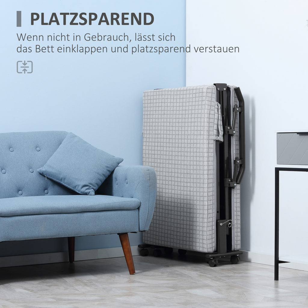 Sind Sie besorgt, dass keine Betten für unerwartete Gäste zur Verfügung stehen? Dieses praktische und bequeme Klappbett von HOMCOM schafft Abhilfe! Es lässt sich im Handumdrehen aufbauen und wieder platzsparend verstauen, sobald es nicht mehr gebraucht wird. Der stabile Stahlrahmen ermöglicht eine Belastung bis zu 150 kg und die großzügige Polsterung garantiert einen erholsamen, komfortablen Schlaf. Mit diesem Reisebett werden Ihre Übernachtungsgäste sicher noch länger bleiben wollen!