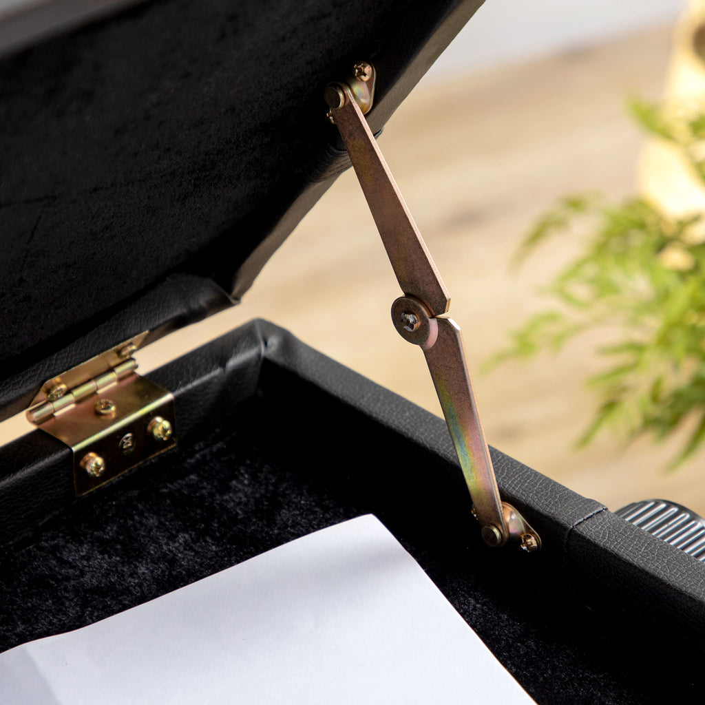 - Unter der Sitzfläche befindet sich ein versteckter Stauraum, in der Sie Ihre Noten und Ihr Zubehör verstauen können