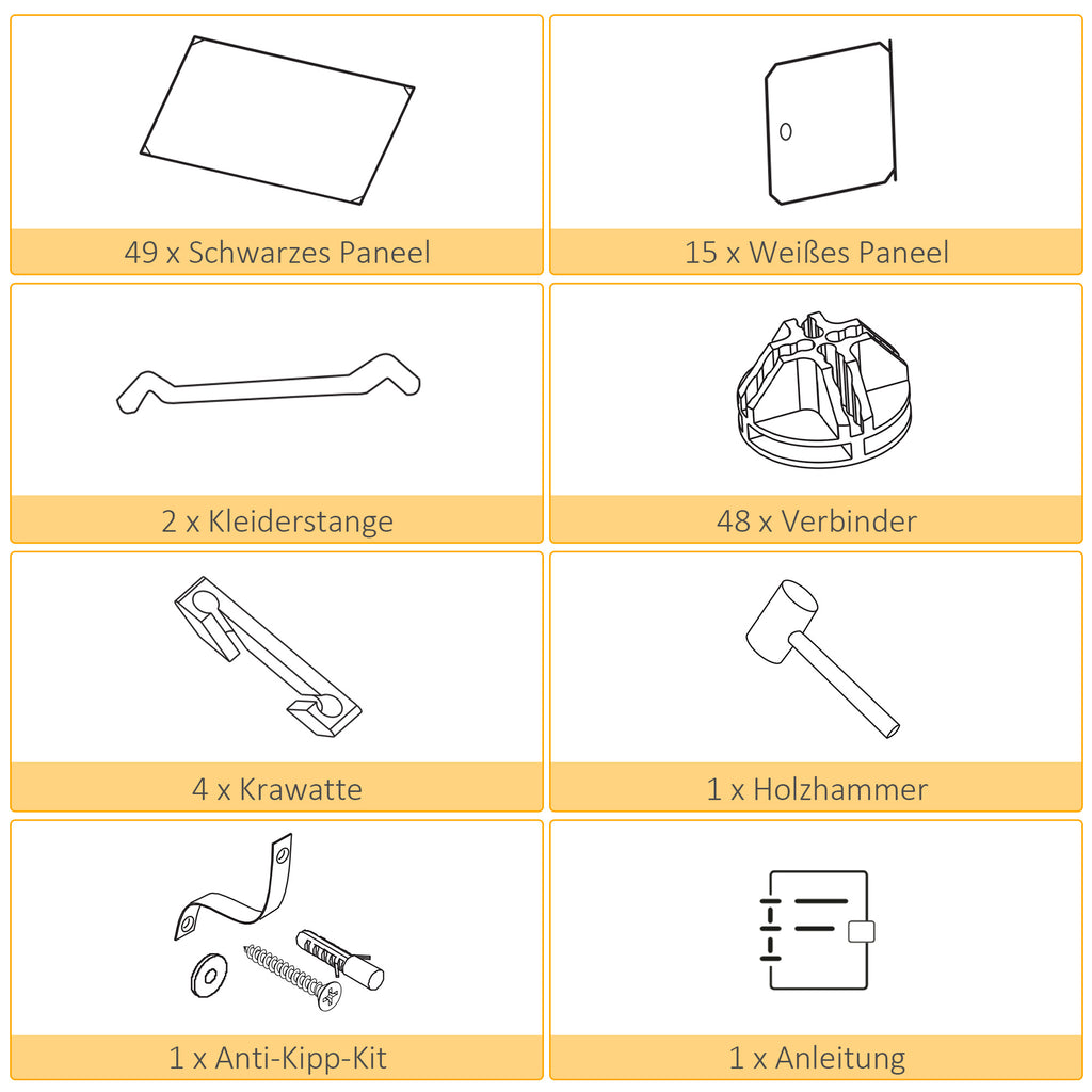 - Selbstmontierbarer Kleiderschrank, der mit den mitgelieferten ABS-Verbindern in jede Form gebracht werden kann
