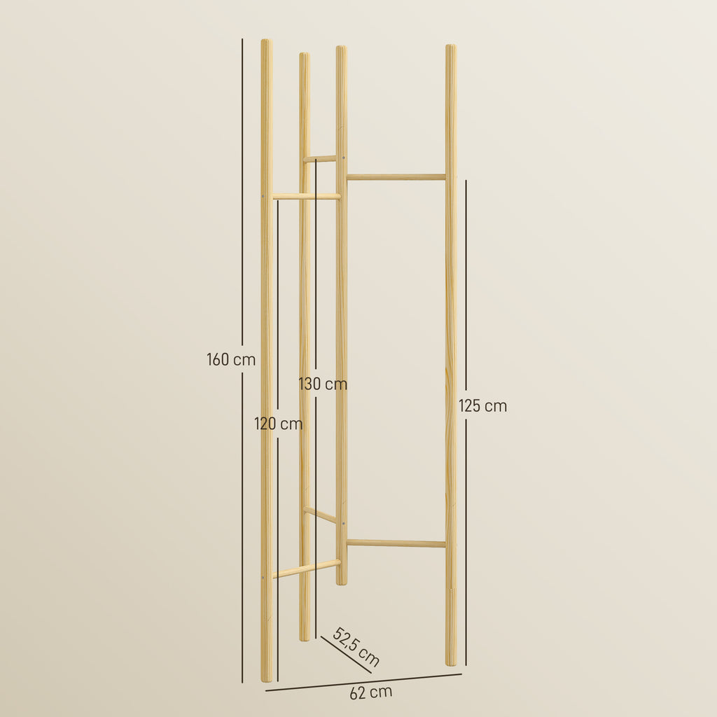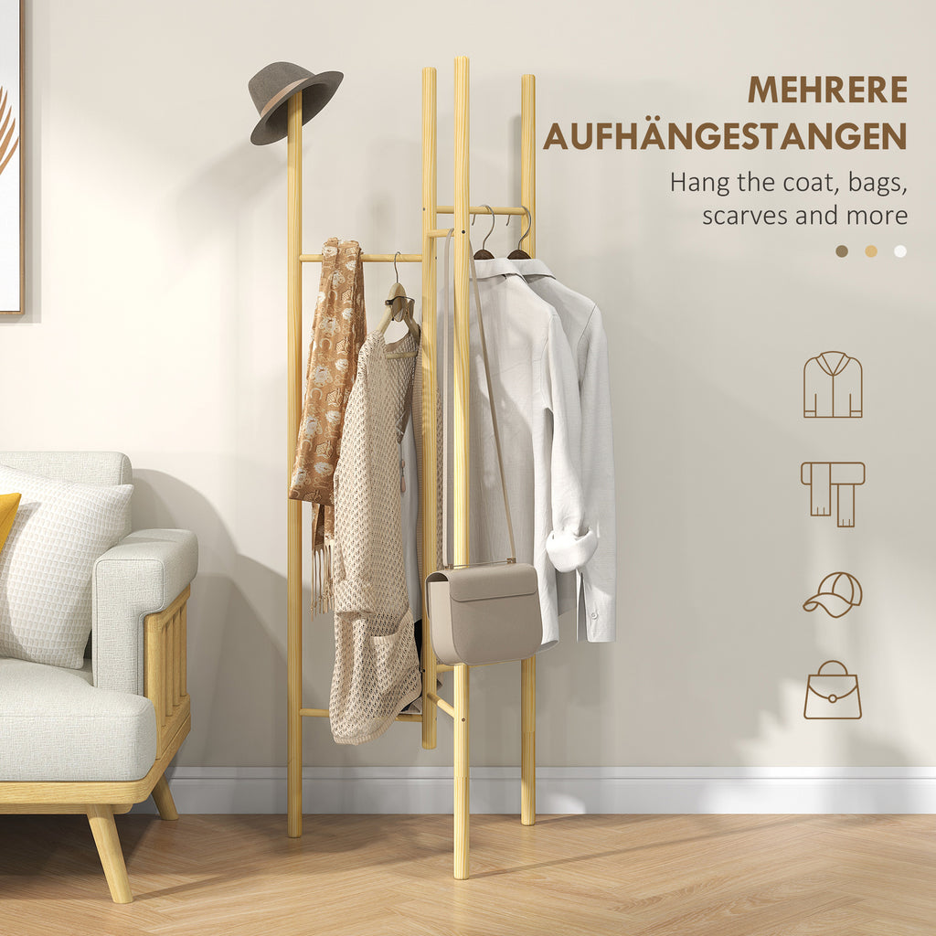Verwandeln Sie Ihren Eingangsbereich mit dem stilvollen HOMCOM Garderobenständer! Dieses nordisch inspirierte Stück bietet mit seinen zahlreichen Hängebalken reichlich Platz für Mäntel und Schals. Hergestellt aus Kiefernholz mit natürlichem Finish, überzeugt es nicht nur als Hingucker, sondern auch durch seine stabile Dreiecksstruktur. Ideal, um Eleganz und Funktionalität in Ihren Raum zu bringen, ist dieser Kleiderständer das vielseitige Element, das Ihr Zuhause benötigt.