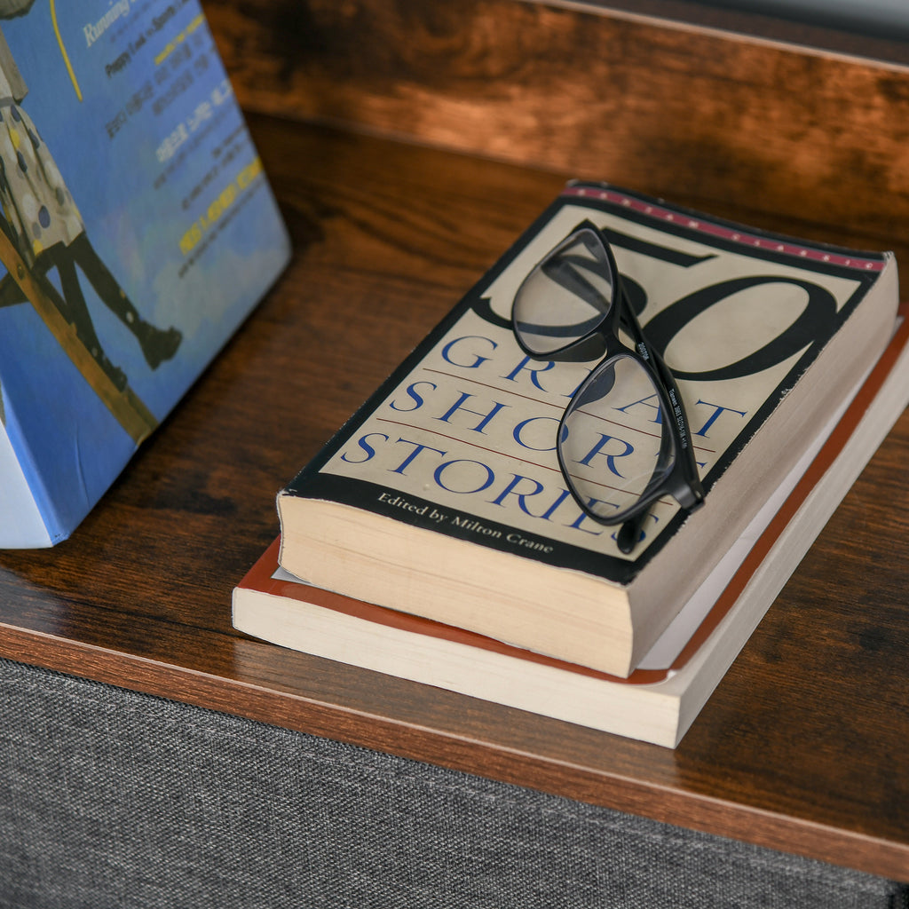 - Mit zwei Regalen, zwei kleinen Schubladen und zwei großen Schublade – bietet jede Menge offenen und diskreten Stauraum