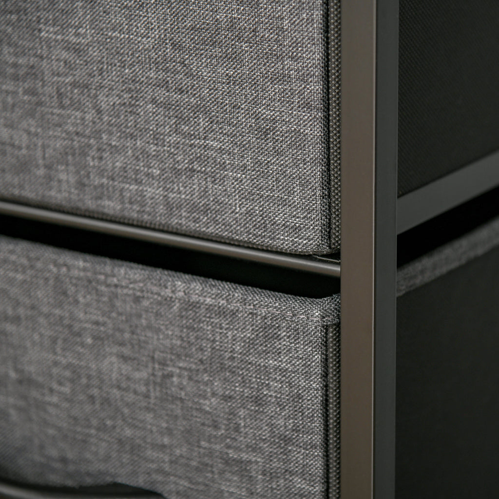 - Schubladen mit Leinenoptik der Kommode können herausgenommen und gefaltet werden. Mit Griff zum Öffnen und Schließen