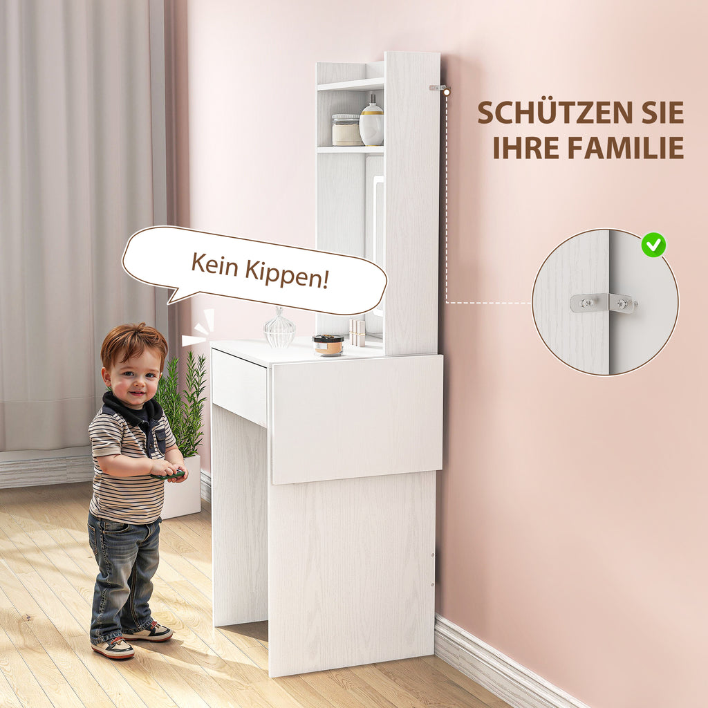 - Seitliche Klapptischplatte des Makeup Tisches erweitert den Arbeitsbereich und lässt sich zum Platzsparen herunterklappen