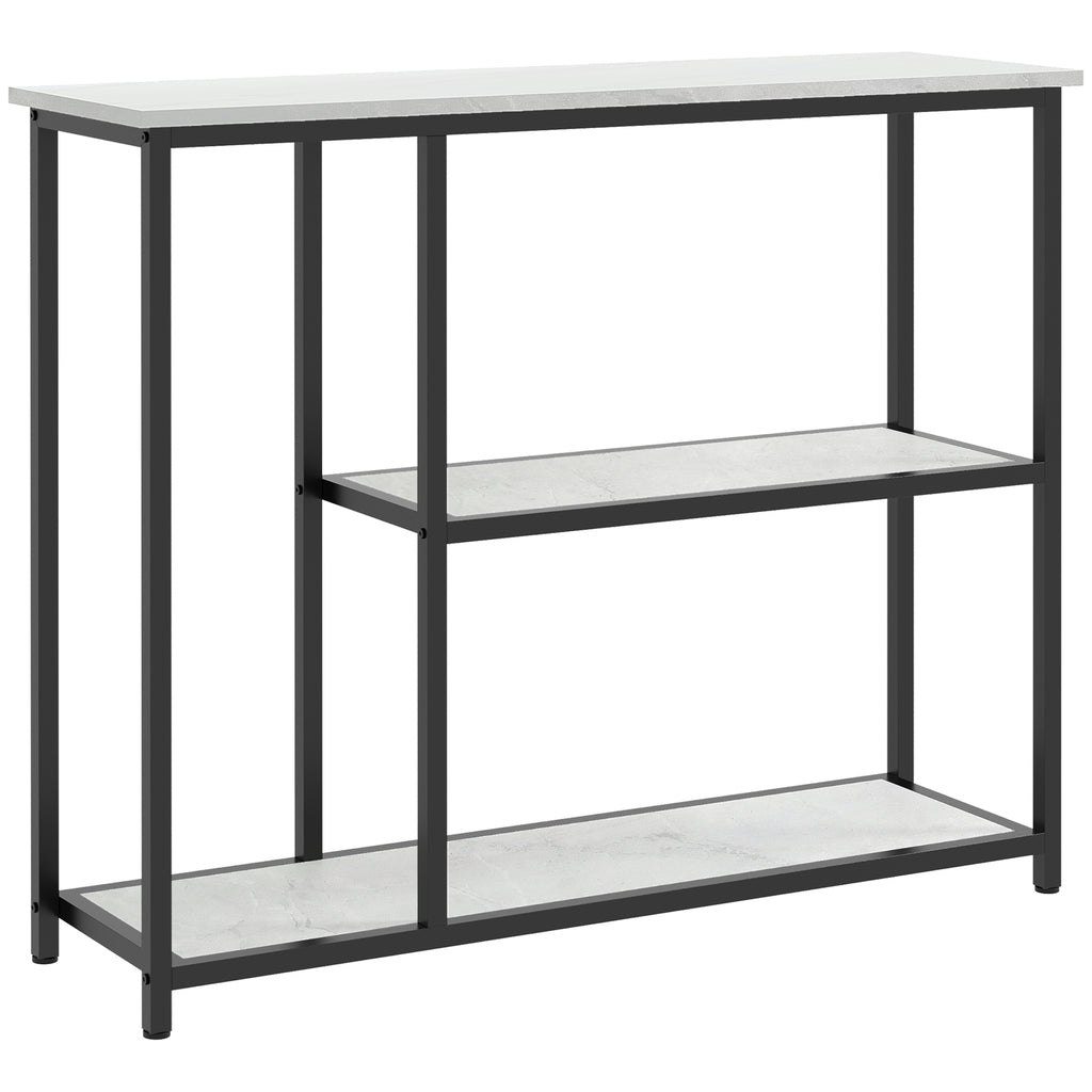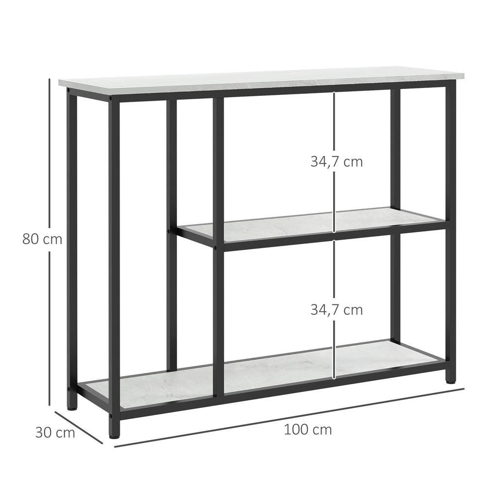 Suchen Sie eine clevere Aufbewahrungslösung und ein elegantes Design für den Eingangsbereich? Unser Konsolentisch von HOMCOM bietet viel Stauraum. Drei Ebenen zum Präsentieren von Familienfotos, Pflanzen oder vieles mehr. Holzwerkstoff & robuster Stahl garantieren Zuverlässigkeit & sind pflegeleicht. Verleihen Sie Ihrem Flur, Wohnzimmer und Schlafzimmer mit diesem eleganten Tisch einen Hauch von Klasse