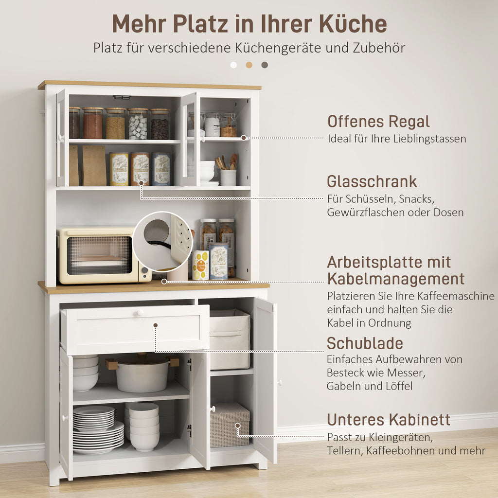 Genießen Sie Ihre Zeit in der Küche ohne Platzprobleme. Unser HOMCOM Küchenschrank schafft Ordnung und Übersichtlichkeit. Nie mehr mühsames Stapeln von Töpfen und Pfannen. Mit ausreichend Stauraum wissen Sie immer, wo alles ist und können bequem zugreifen. Kochen und unterhalten Sie sich stressfrei dank des praktischen Küchenschrankes von HOMCOM. Mit diesem Küchenschrank wird ihre Wohnung zu einem gemütlichen Zuhause.