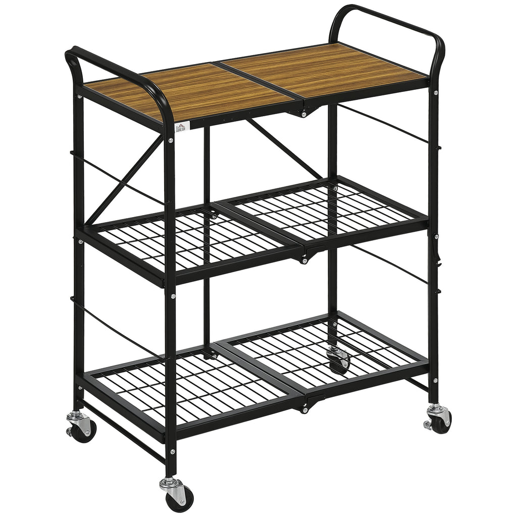 HOMCOM Küchenwagen im Industriedesign, mit 3 Regalen, Mehrzweckwagen, Servierwagen, 4 Räder, klappbar, Braun + Schwarz