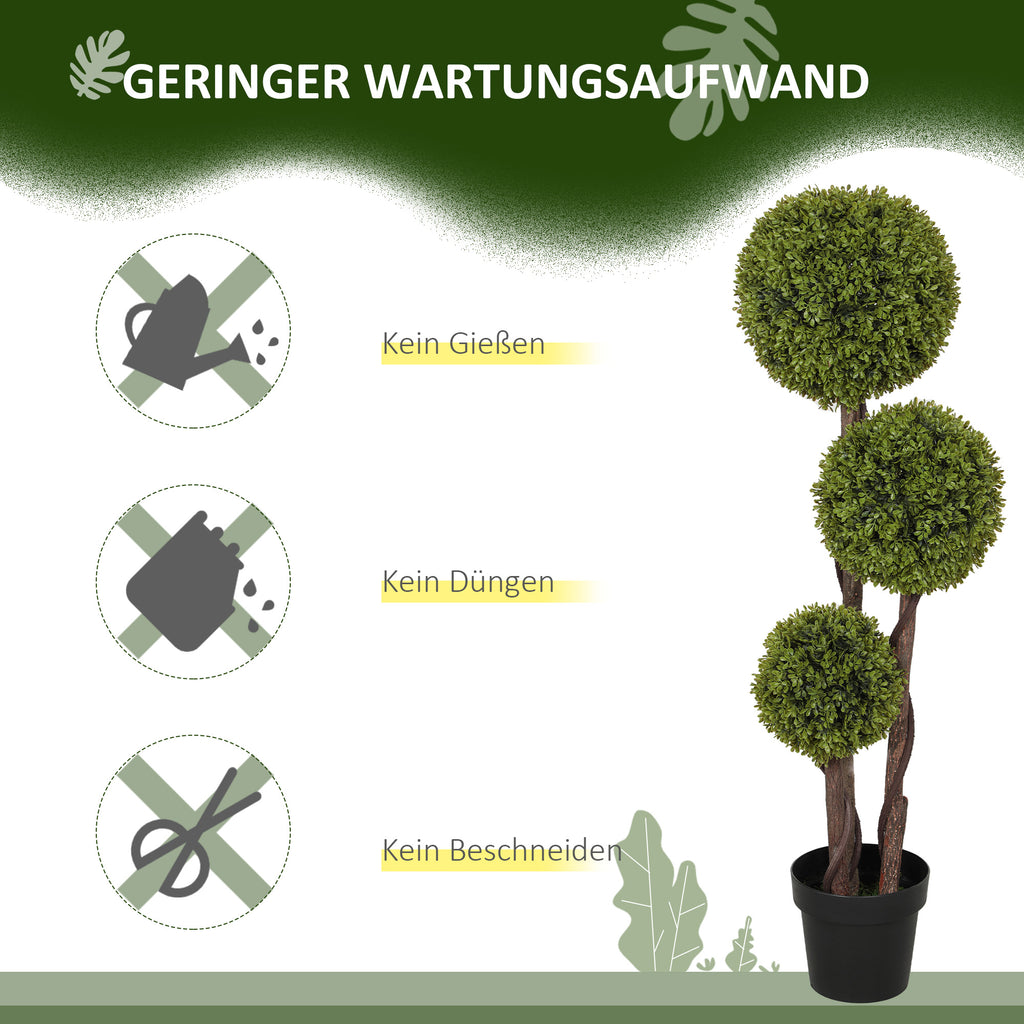 HOMCOM Künstlicher Buchsbaum, Kunstpflanze, realistisches Aussehen, Outdoor, Grün + Schwarz