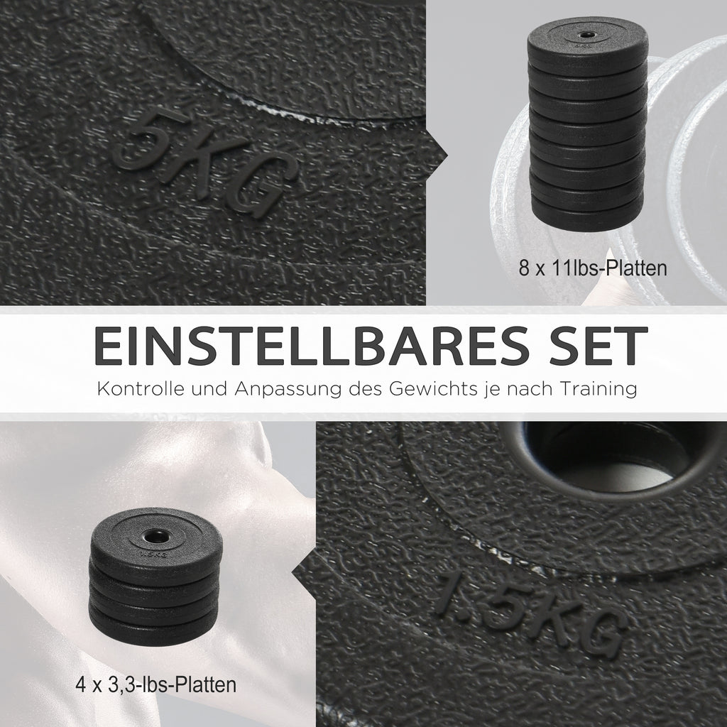Sparen Sie wertvolle Zeit und trainieren Sie bequem von zu Hause aus mit unserem Hantelset von HOMCOM! Unser starkes Hantelset bietet Ihnen ein umfassendes Workout-Erlebnis. Beginnen Sie mit einem niedrigen Gewicht und steigern Sie es, wenn Sie fitter werden. Egal, ob Sie Ihre Arme, Schultern, Brust oder Beine trainieren möchten, dieses Set ermöglicht es Ihnen, jeden Muskel gezielt anzusprechen und Ihre Fitnessziele zu erreichen. Bringen Sie Ihren Körper in Topform, ganz bequem und schonend.