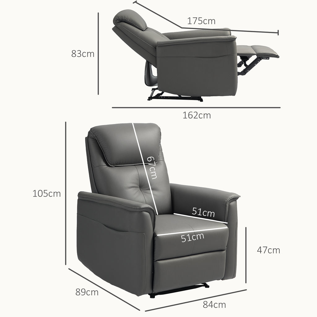 Lassen Sie sich in den HOMCOM Seniorensessel fallen und machen Sie ihn zu Ihrem neuen Lieblingsplatz. Lehnen Sie sich bis zu 150° zurück, unterstützt durch das hochgestellte Fußteil. Durch Druck der Fersen auf das Fußteil richtet sich der Sessel ganz einfach wieder auf. Genießen Sie den Sitzkomfort der hochdichten Schaumstoff-Füllung, eingehüllt in weichen Mikrofaserstoff. Dieser bequeme Kinosessel passt ideal in Ihr Wohn- oder Schlafzimmer und lässt Sie den Alltags-Stress vergessen.