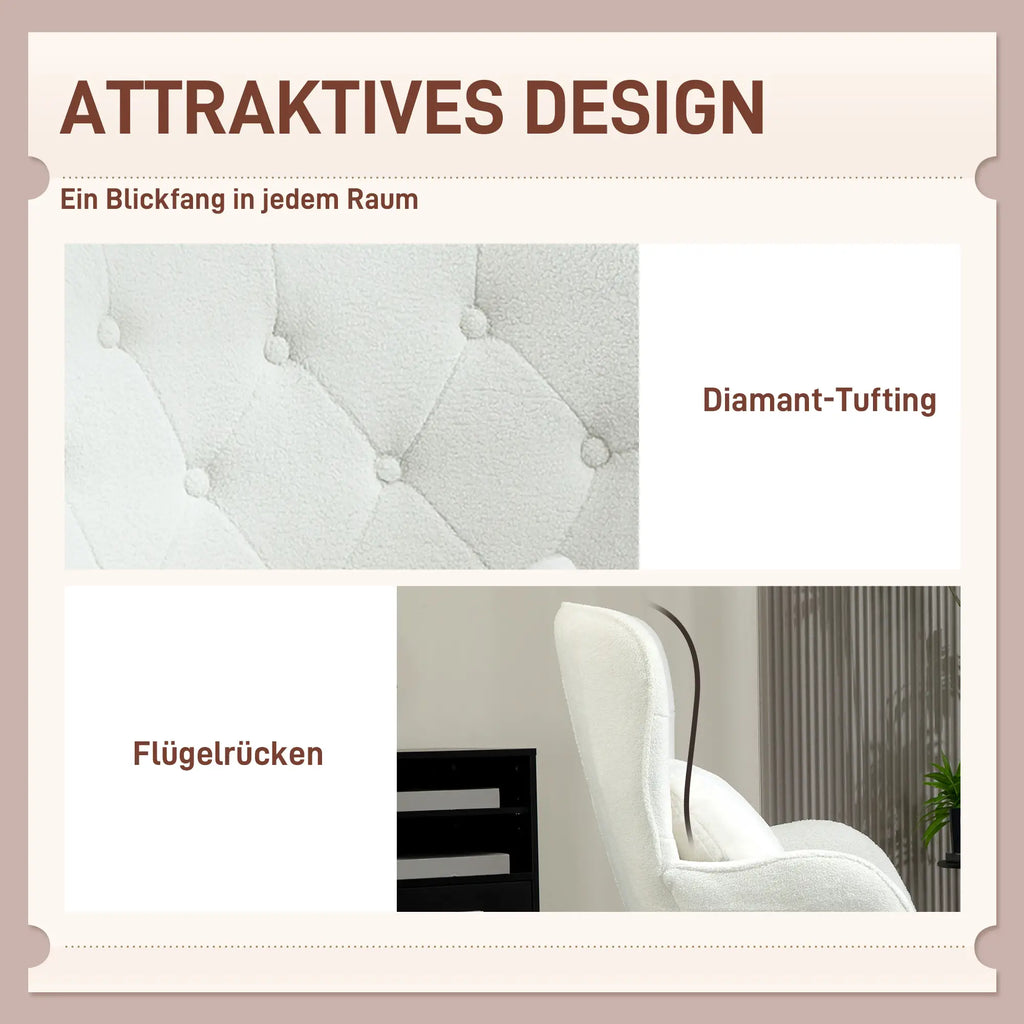 Einfach nur wow: der Polsterstuhl von HOMCOM! Die stilvolle Rautensteppung und der kuschelige Teddystoffbezug schaffen Komfort zum Anfassen. Mit einem 12 cm dicken Sitz und einem kuscheligen Kissen genießen Sie unvergleichlichen Komfort. Die stabilen Beine des Armlehnstuhls aus Holz mit Filzunterlagen schützen Ihren Boden und runden das Gesamtbild ab - ideal für Ihr Wohnzimmer oder Schlafzimmer.