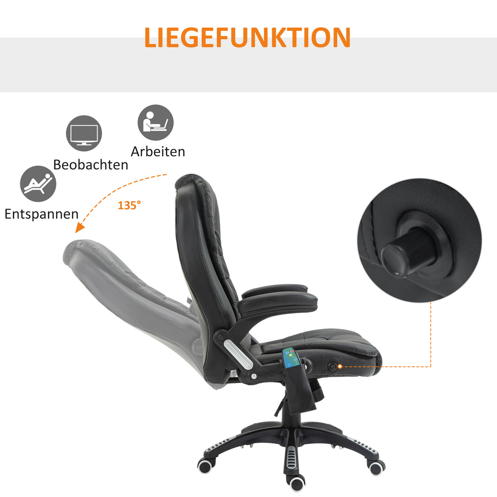 Im Büroalltag, Home-Office oder bei einer längeren Gaming Session: Langes Sitzen ist bei den meisten Menschen Alltag. Das kann schnell mal auf den Rücken gehen. Damit Sie diesen Herausforderungen perfekt gewachsen sind, haben wir unseren praktischen Chefsessel mit Massagefunktion im Angebot. Die wohltuende Vibrationsmassage verwöhnt Ihren Körper während des Arbeitens. Dank der integrierten Wärmefunktion lockern sich Ihre Muskeln noch ein wenig schneller. Der Bürostuhl ist aus hochwertigem schwarzen Kunstleder gefertigt. Das sieht nicht nur schick aus, sondern ist auch besonders pflegeleicht. Davon abgesehen ist unser Chefsessel ergonomisch geformt und höhenverstellbar. Auch ohne Massage und Wärmefunktion bewältigen Sie so Ihren Alltag mühelos.