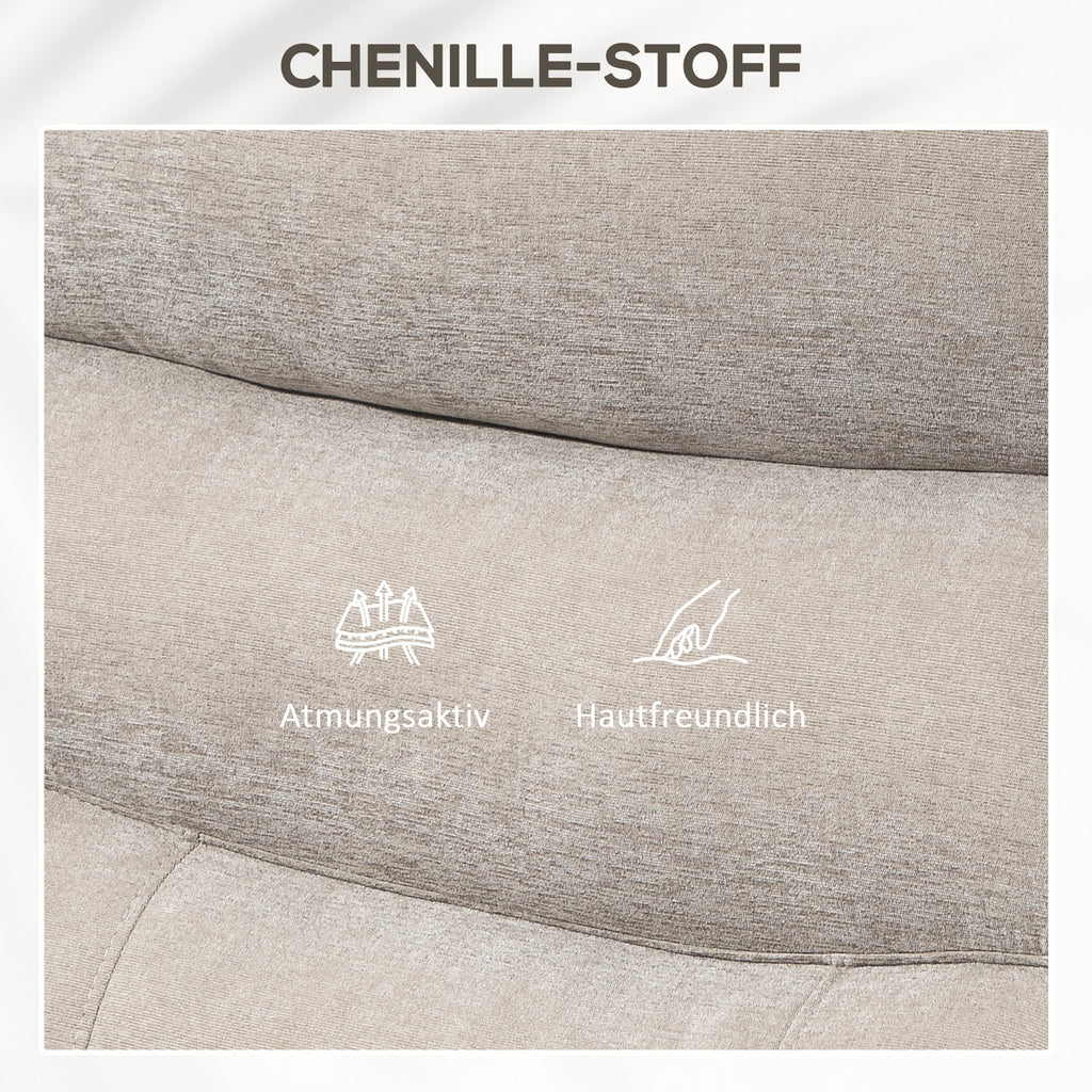 Erleben Sie den Komfort des HOMCOM Massagesessels mit zwei Motoren, die es erlauben, Fußstütze und Rückenlehne separat einzustellen. Stehen Sie nahezu mühelos auf oder lehnen Sie sich entspannt bis 170° zurück. Acht Vibrationsmassagepunkte und angenehme Lendenwärme des Fernsehsessels in hautsympathischem Stoff bieten gezielte Entspannung. Geeignet für größere Personen bis zu 1,9 m.
