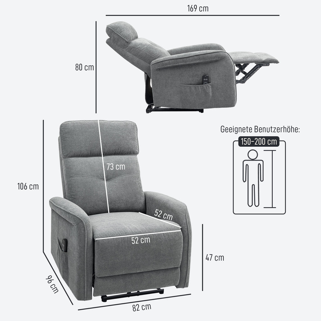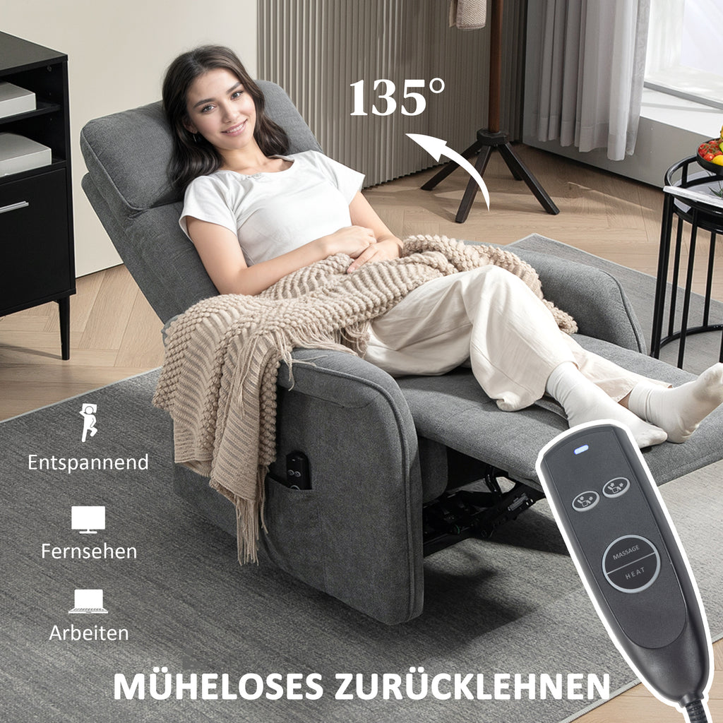 Genießen Sie den luxuriösen Komfort des HOMCOM Massagesessels und entspannen Sie sich mit Stil! Erleben Sie Entspannung pur mit acht Vibrationsmassagepunkten am Rücken, Lenden, Oberschenkeln und Beinen sowie einer wärmenden Lendenstütze. Justieren Sie Rückenlehne und Fußstütze des Kinosessels bis zu 135° einfach per Fernbedienung für optimalen Komfort. Das samtartige Material schmeichelt zudem der Haut und sorgt für ein luxuriöses Sitzgefühl.
