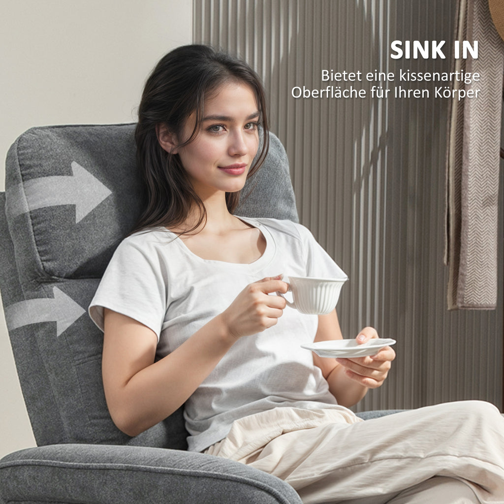- Der samtartige Bezug des Relaxsessels ist atmungsaktiv