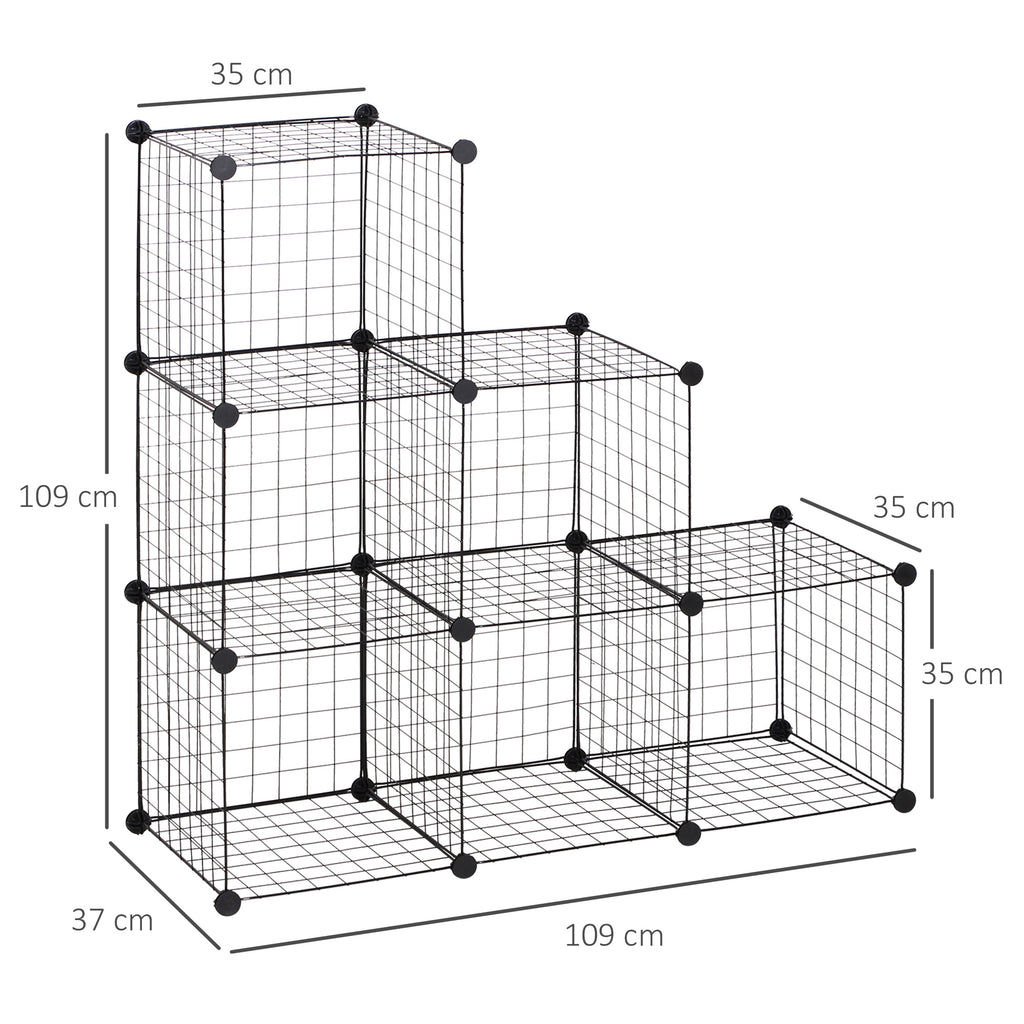Richten Sie Ihr Zuhause individuell mit dem anpassbaren Steckregal von HOMCOM ein. Aus robustem Metall gefertigt, trägt das Stufenregal bis zu 30 kg und umfasst sechs flexible Würfel, die sich jeder Raumsituation anpassen lassen. Die Montage erfolgt sicher mittels ABS-Verbindern. Das offene Design der Würfel erleichtert den Zugriff auf Bücher, Spielzeug, Fotos und Kleidung. Halten Sie stilvoll und praktisch Ordnung in Ihrem Zuhause.