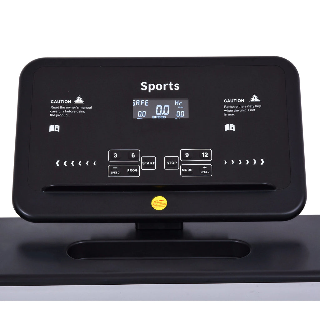 Joggen Sie sich Schritt für Schritt zur Wunschfigur mithilfe dieses tollen Laufbands von HOMCOM. Beobachten bequem Sie Ihren Trainingsfortschritt auf dem Display während Sie laufen oder entspannt walken. Dank des stabilen Stahlrahmens und der rutschfesten Lauffläche können Sie besonders sicher trainieren. Drücken Sie in Ausnahmesituationen den Notaus-Knopf, um das Laufband sofort zum Stehen zu bringen. Bei Nichtgebrauch lässt sich das Laufband leicht zusammenklappen und platzsparend verstauen.