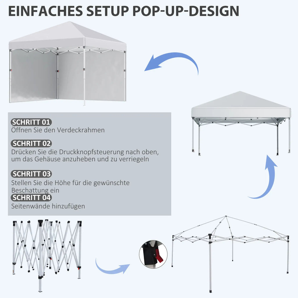- ✔ Zwei abnehmbare Wände des Faltpavillons zum Schutz vor Wind und Regen und als Blickschutz
