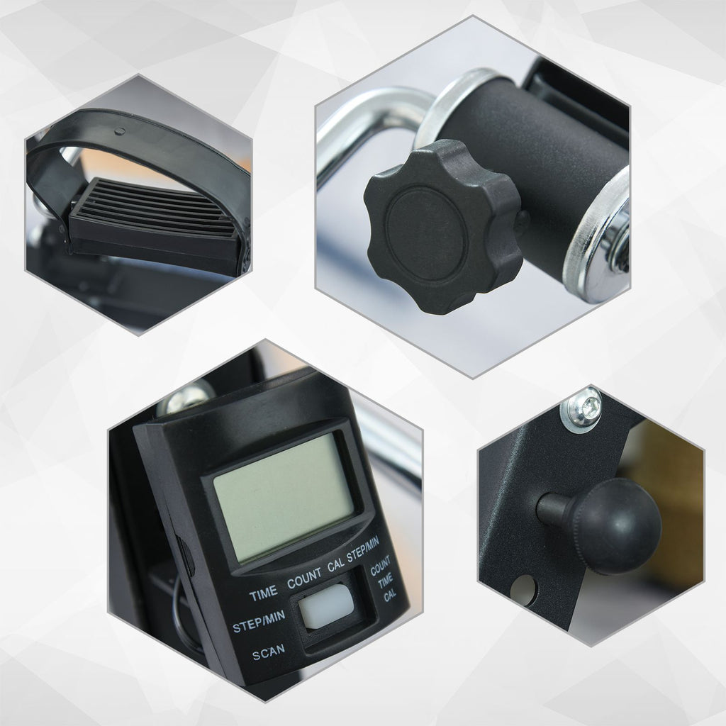 Mit dem Bewegungstrainer von HOMCOM stärken Sie Arm- und Beinmuskulatur schonend. Das macht ihn zum idealen Trainingsgerät für Senioren und ältere Menschen. Durch regelmäßiges Training werden Ihre körperliche Fitness und Ausdauer stetig verbessert, damit Sie auch im Alter weiterhin gesund sind. Der Heimtrainer verfügt über eine stabile Stahlkonstruktion und ist mit einem LCD-Display zum Anzeigen Ihrer Trainingsdaten ausgestattet. Der Widerstand ist nach Ihrem aktuellen Trainingsstand stufenlos verstellbar. Wagen Sie den ersten Schritt zu einem gesünderen Ich, mit Ihrem Pedaltrainer.
