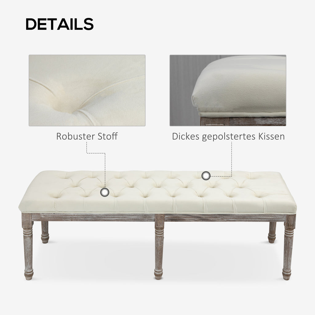 Schaffen Sie einen sofortigen Blickfang für Ihr Haus mit dieser auffälligen Bank von HOMCOM. Der üppige Samtstoff und die klassischen geriffelten Beine verleihen Ihrem Zuhause einen Hauch von Vintage-Glamour. Der Sitz mit Knopftufting verbessert die Stützkraft und unterstreicht den eleganten Stil. Die weich gepolsterte Sitzfläche bietet außergewöhnlichen Komfort. Bieten Sie Ihren Gästen bei jedem Besuch eine bequeme Sitzbank von HOMCOM.