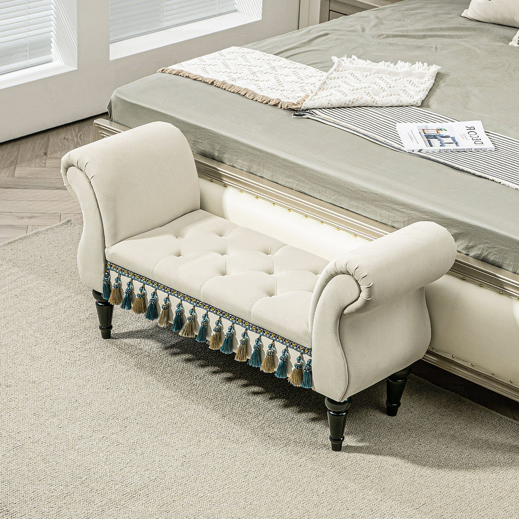 - Elegante Knopfheftung und dekorative Quasten der Polsterbank verleihen einen luxuriösen und anspruchsvollen Look