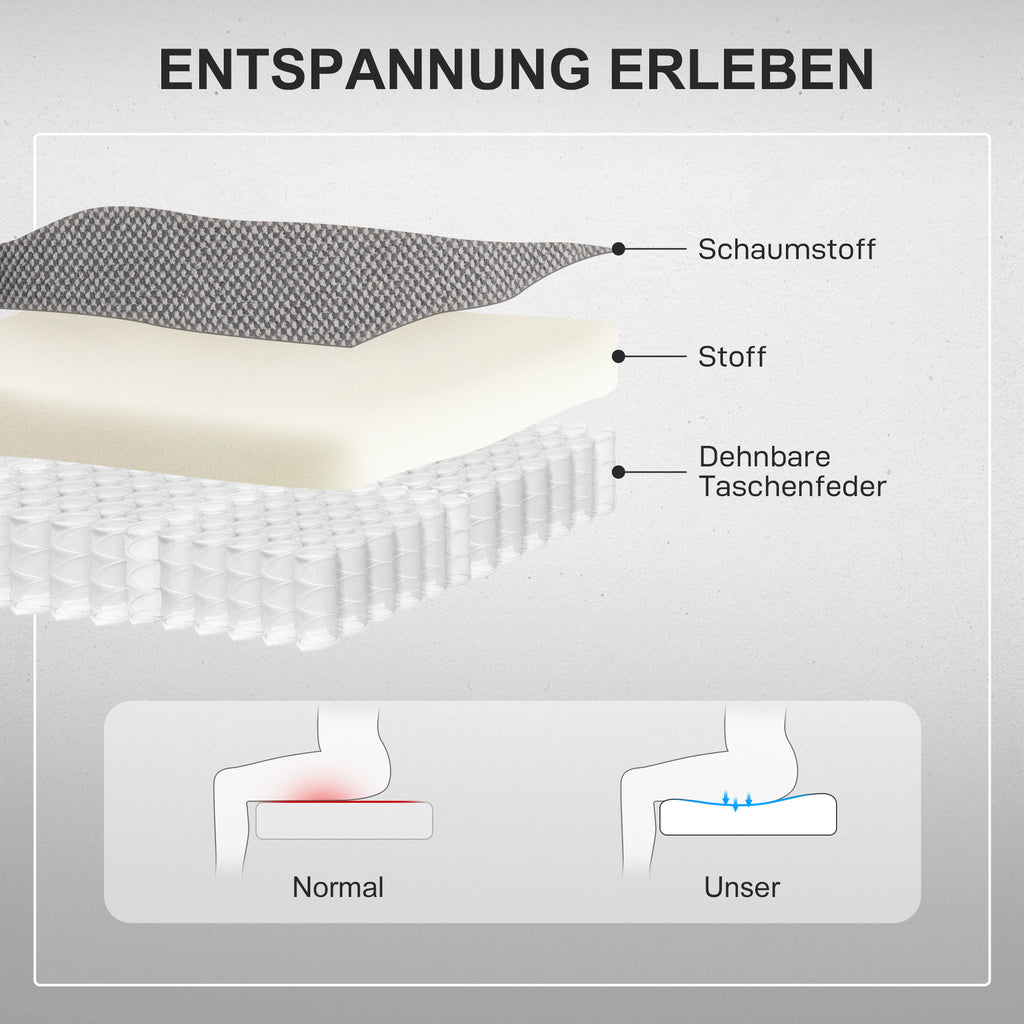 - Weicher Stoffbezug über dickem, hochdichtem Schaumstoff für zusätzlichen Komfort