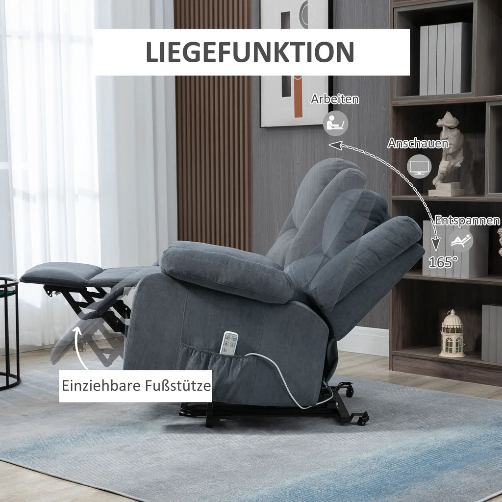 Machen Sie sich das Leben leichter mit dem elektrischen Relaxsessel mit Liegefunktion von HOMCOM! Dieser innovative Sessel bietet Ihnen dank der praktischen Aufstehhilfe mehr Komfort und Bewegungsfreiheit. Ein Knopfdruck auf der Fernbedienung des TV-Sessels genügt, um sicher und bequem von einer sitzenden in eine stehende oder liegende Position zu wechseln. Ideal für Menschen mit Mobilitätsproblemen – genießen Sie mehr Unabhängigkeit und Wohlbefinden in Ihrem Alltag.