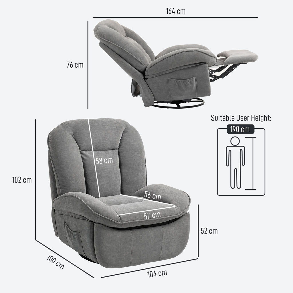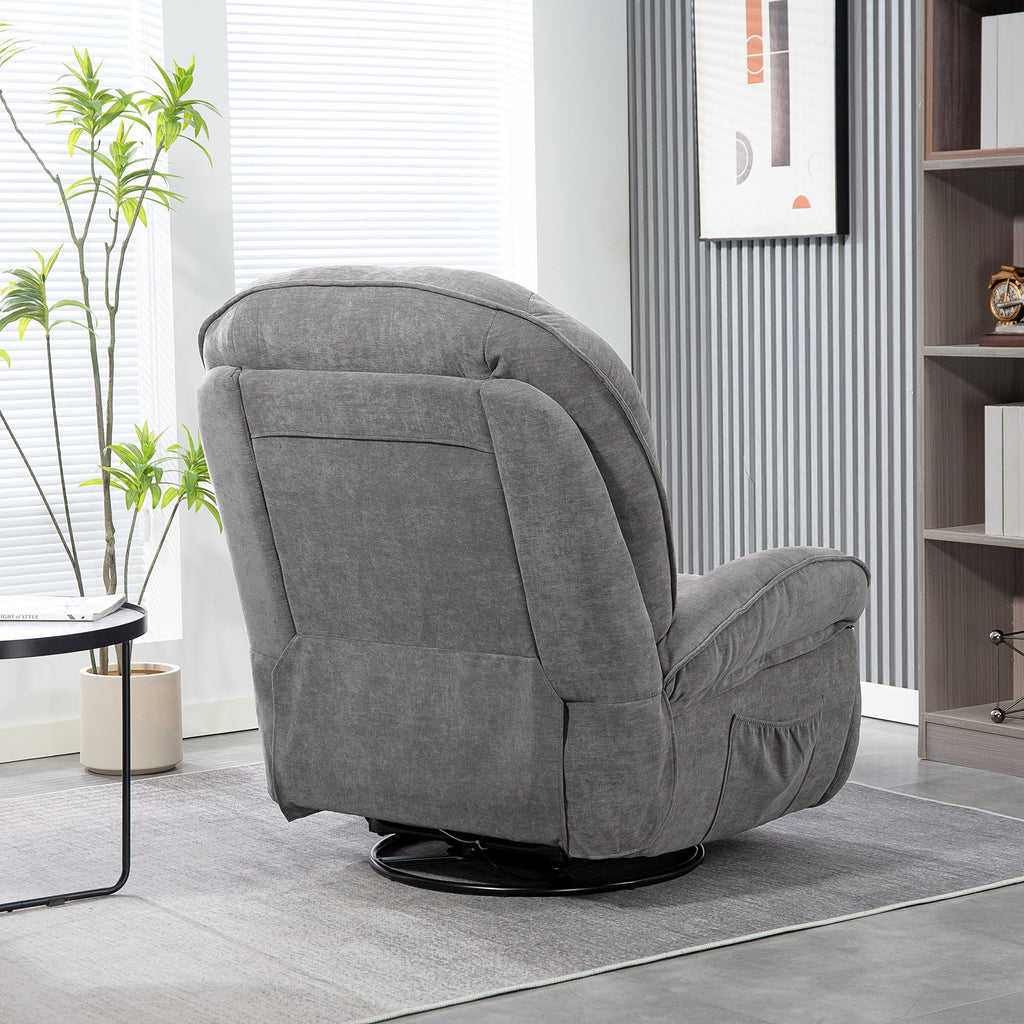 Entdecken Sie den Komfort des HOMCOM Relaxsessels mit einer 155° neigbaren Rückenlehne, die mühelos per Schnalle gesteuert wird. Genießen Sie die einzigartige 360-Grad-Dreh- und Schaukel-Funktion, ideal zum Beruhigen Ihrer Kleinen oder zum Entspannen. Mit üppigem Chenille-Stoff und gepolsterter Polsterung ist dieser Kinosessel mit Liegefunktion Ihr gemütlicher Rückzugsort zu Hause.