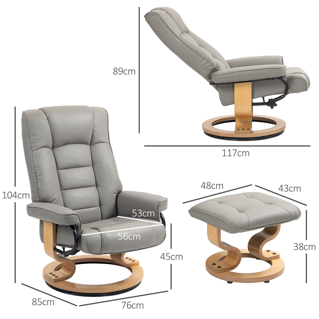 Entspannen Sie stilvoll mit dem Relaxsessel mit Hocker von HOMCOM, Ihrem neuen Partnerduo für ultimative Erholung! Lehnen Sie sich bis zu 130° zurück und genießen Sie die Bewegungsfreiheit einer 360° drehbaren Basis sowie einer Schaukelfunktion. Gönnen Sie sich den Luxus unseres HOMCOM TV-Sessels, umhüllt von elegantem Kunstleder und eingebettet in einen stabilen Rahmen aus gebogenem Holz. Ideal fürs Wohnzimmer oder als stilvolle Ergänzung für Ihre Leseecke.