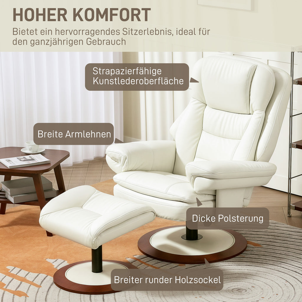 Gönnen Sie sich die perfekte Auszeit mit dem eleganten Relaxsessel mit Hocker von HOMCOM. Nach einem langen Tag können Sie sich entspannt zurücklehnen und die Seele baumeln lassen. Die dicke Polsterung des TV-Sessels sorgt für höchsten Komfort, während der maximale Neigungswinkel von 135° Ihnen die Freiheit gibt, Ihre ideale Sitzposition zu finden. Der drehbare Sitz ermöglicht es Ihnen, sich mühelos zu bewegen und die Umgebung zu genießen. Verwandeln Sie Ihr Zuhause in eine Oase der Entspannung.