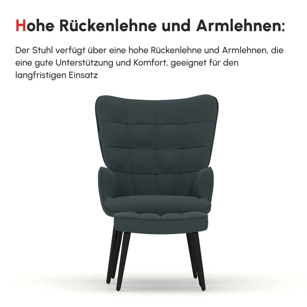 Dieses HOMCOM-Polstersessel-Set beinhaltet einen großen Sessel und einen Hocker, sodass Sie Ihren Körper entspannen und gleichzeitig Ihre Beine ausruhen können. In einer entspannten und modernen Form bietet der Relaxsessel viel Platz, um sich zurückzulehnen, mit einer gepolsterten Sitzfläche für Komfort und einer hohen Rückenlehne für Unterstützung. Das samtige Polster trägt zum Komfort bei und wird durch die schlanken Beine, für einen luxuriösen Look, ergänzt.