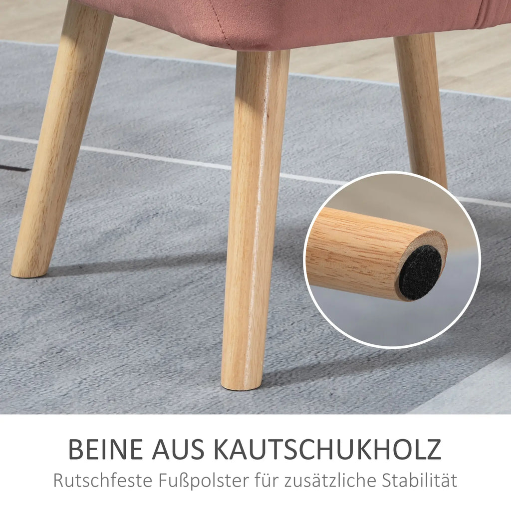 HOMCOM Polstersessel, Akzentsessel, Skandi Design, Samtoptik, bis 120 kg, Kautschukholzbeine, Rosa