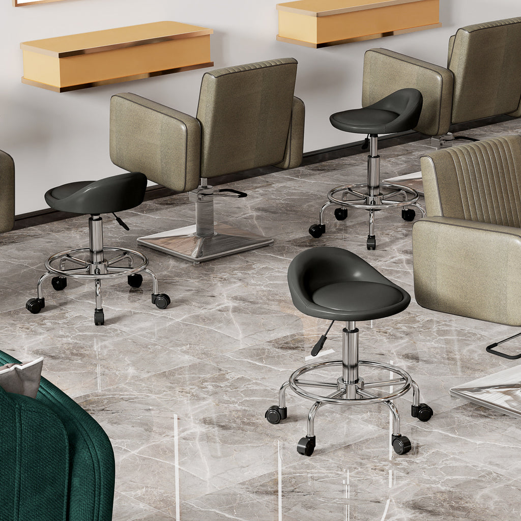 Entdecken Sie bequemes Sitzen mit dem HOMCOM Rollhocker, Ihrem neuen Favoriten für Salons! Der Drehhocker ist mit weichem Schaumstoff gefüllt und mit pflegeleichtem Kunstleder bezogen, was erstklassigen Komfort garantiert. Die Höhe des Arbeitshockers lässt sich von 59 cm bis 75 cm ideal an Ihren Arbeitsbereich anpassen, sei es im Tattoo-Studio oder im Homeoffice. Bewegen Sie sich leicht auf fünf Universalrädern, die eine 360-Grad-Drehung ermöglichen. Perfekt für Friseursalons, Bars und mehr.