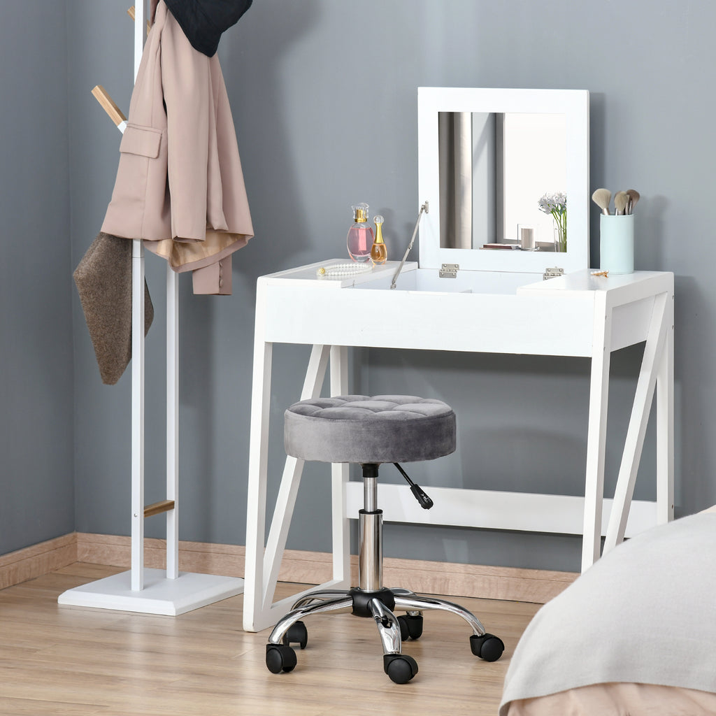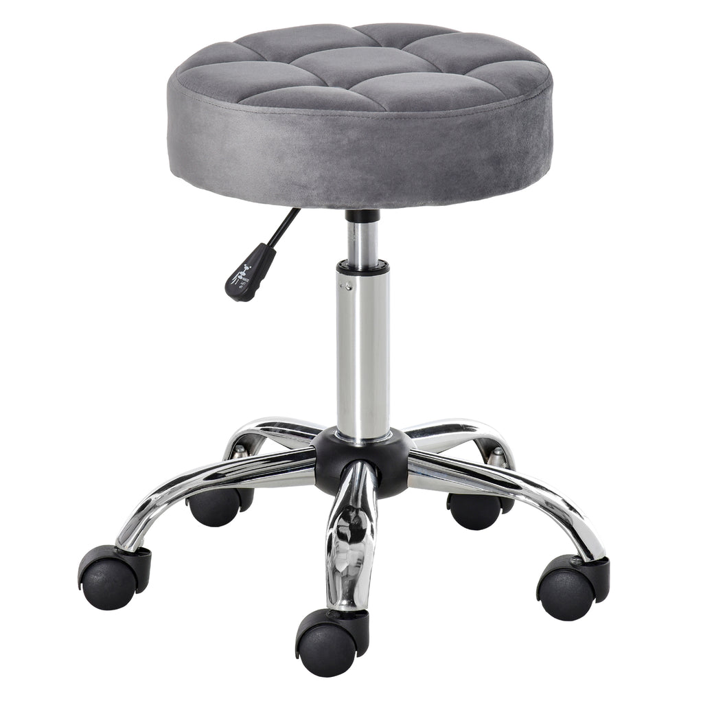 Verleihen Sie Ihrem Raum einen Hauch von Eleganz mit dem HOMCOM Salonhocker. Dieses stilvolle Möbelstück kombiniert Komfort mit Ästhetik: Der weiche Samtbezug und die üppige Polsterung laden zum Verweilen ein, während der robuste Metallfuß Stabilität garantiert. Dank der 360-Grad-Drehrollen bietet der Drehhocker maximale Bewegungsfreiheit. Das ansprechende Velvet-Look und die raffinierte Knopfheftung machen ihn zum idealen Blickfang in jedem Salon.